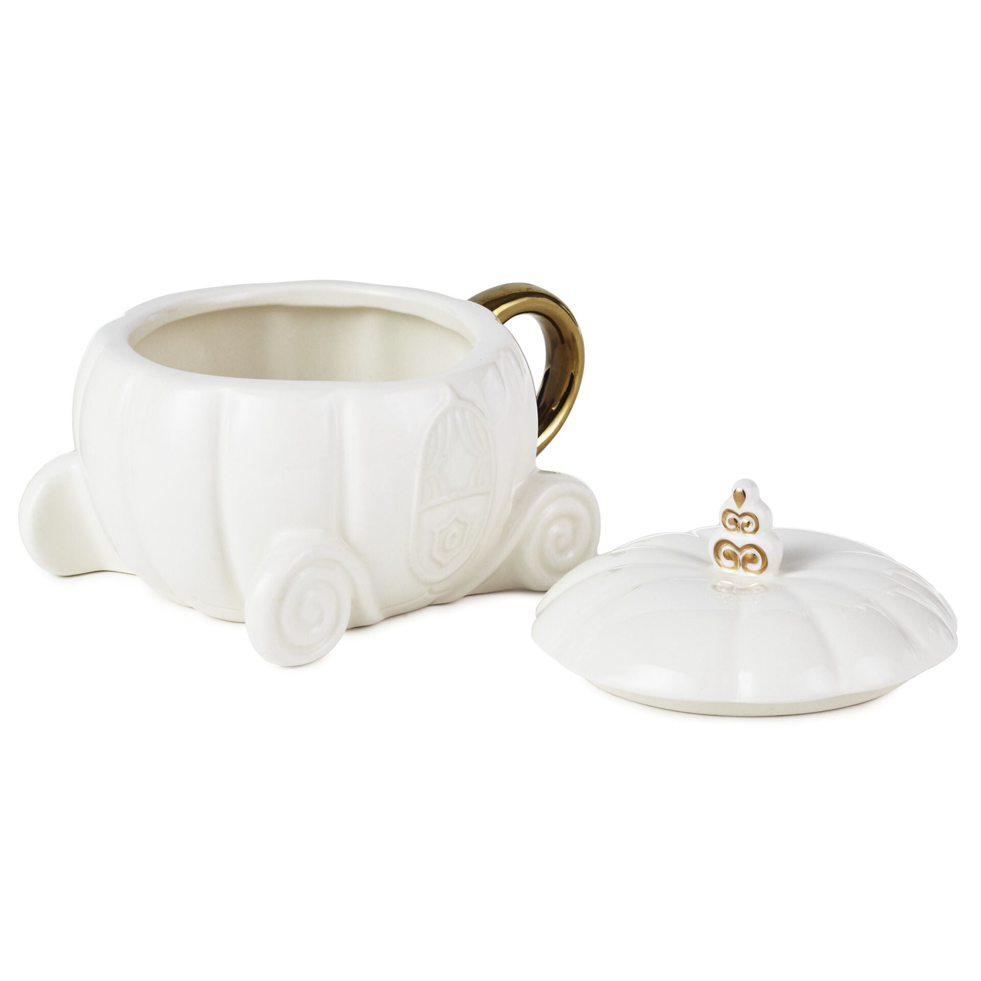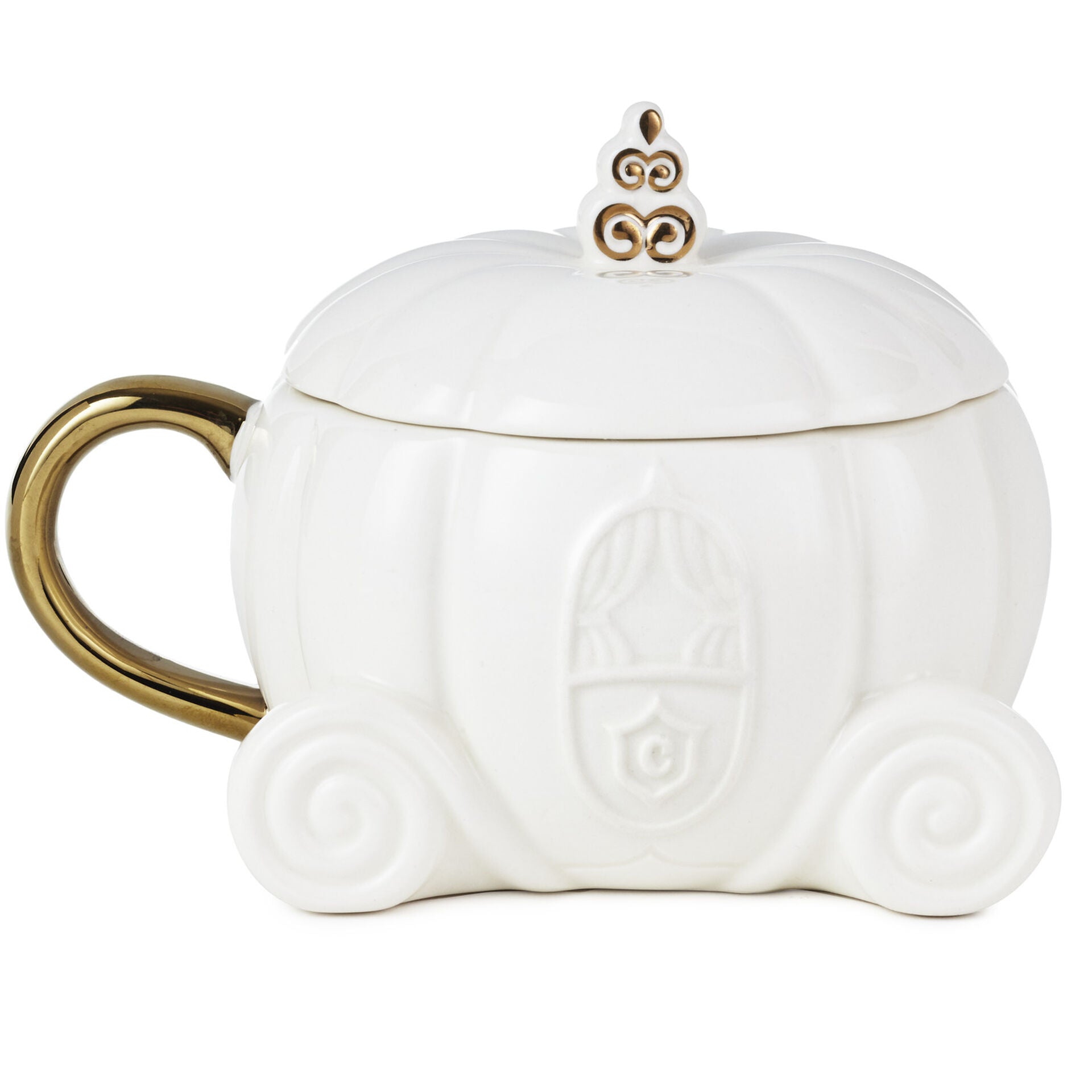 Transforma tu experiencia de café matutino de ordinaria a extraordinaria con esta encantadora taza de Princesas Disney. La taza de cerámica esculpida y la tapa con la forma del elegante carruaje de calabaza de Cenicienta cuentan con un acabado blanco brillante con detalles dorados relucientes. Es un regalo perfecto para el cumpleaños o el Día de la Madre para los fans de Disney de todas las edades.