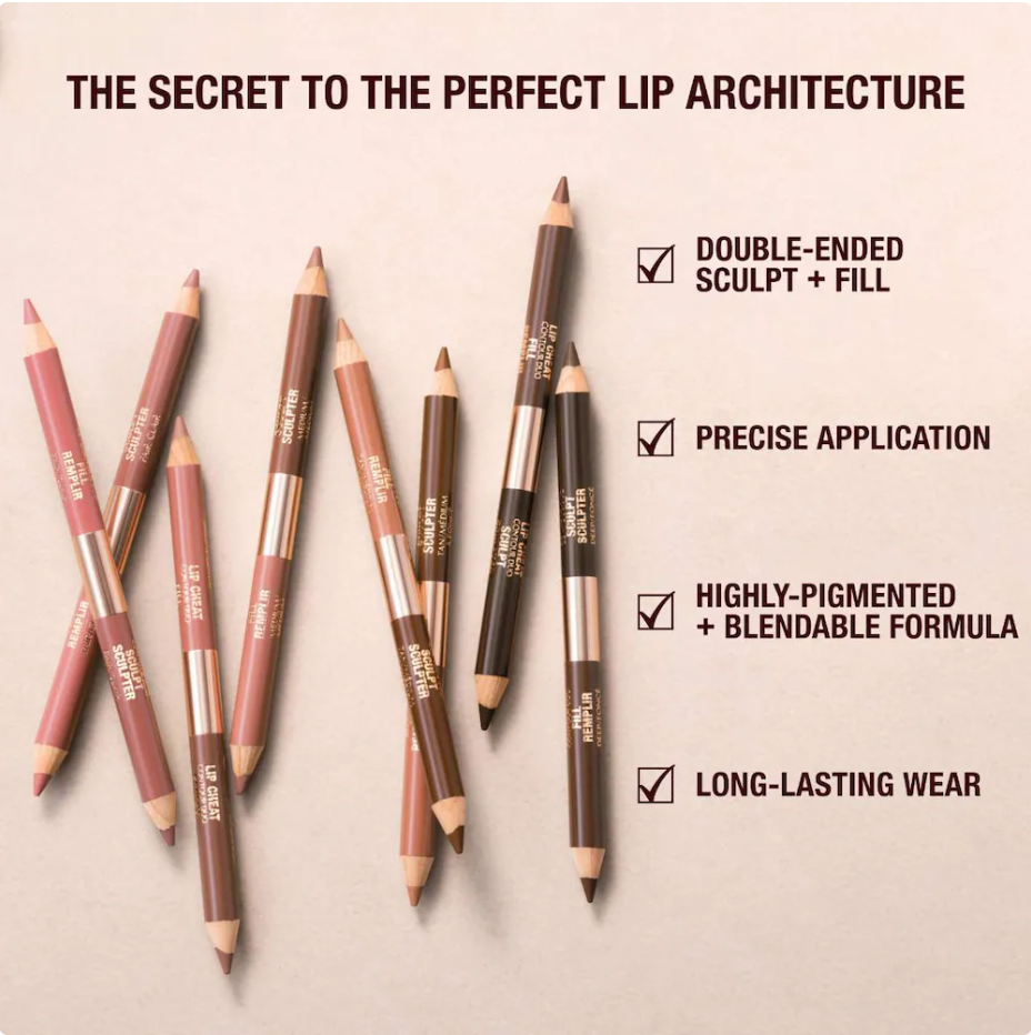 Lo que debes saber: Esculpe y rellena para unos labios más definidos y con apariencia de volumen gracias al Lip Cheat Contour Duo de Charlotte Tilbury. Este dúo incluye dos fórmulas de larga duración: un extremo oscuro y preciso para crear sombras de contorno, junto con un extremo más claro, suave y cremoso para aportar color en todo el labio. Disponible en cuatro tonos nude inspirados en los 90, diseñados específicamente para piel clara, media, bronceada y profunda.
