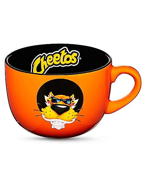 ¡Disfruta cada gota de tu sopa o bebida favorita en esta taza oficial de sopa Cheetos Looking Hole! Esta divertida taza naranja tiene una imagen de Chester Cheetah en la parte delantera y trasera. Esta taza de sopa es perfecta para cualquier aficionado a los Cheetos y te hará desear calentar un poco de sopa o entrar en calor con una gran porción de café, té o chocolate caliente.