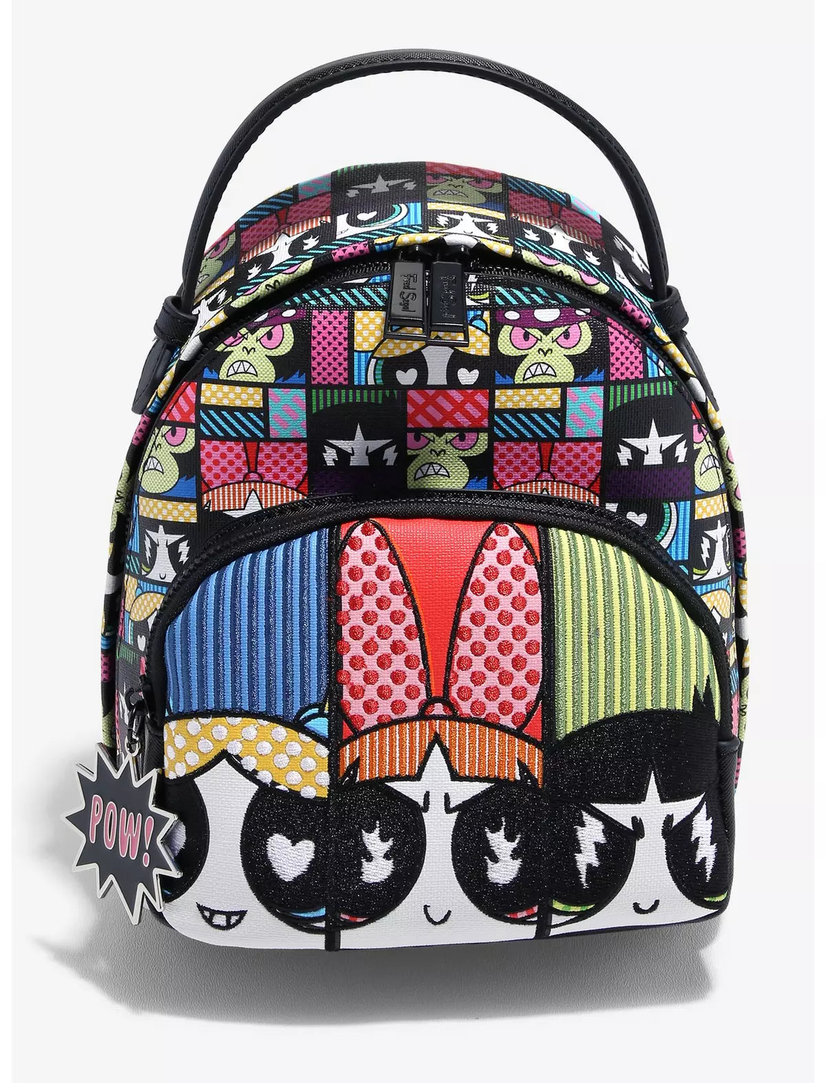 ¡Es Palooza de Las Chicas Superpoderosas! Esta mochila con estampado de azulejos tiene una gran variedad de personajes y patrones, mientras que el bolsillo delantero presenta a Blossom, Bubbles y Buttercup en paneles uno al lado del otro. Con detalles bordados y detalles texturizados, este bolso está rematado con un mensaje esmaltado "¡Pow!" tirador de cremallera.