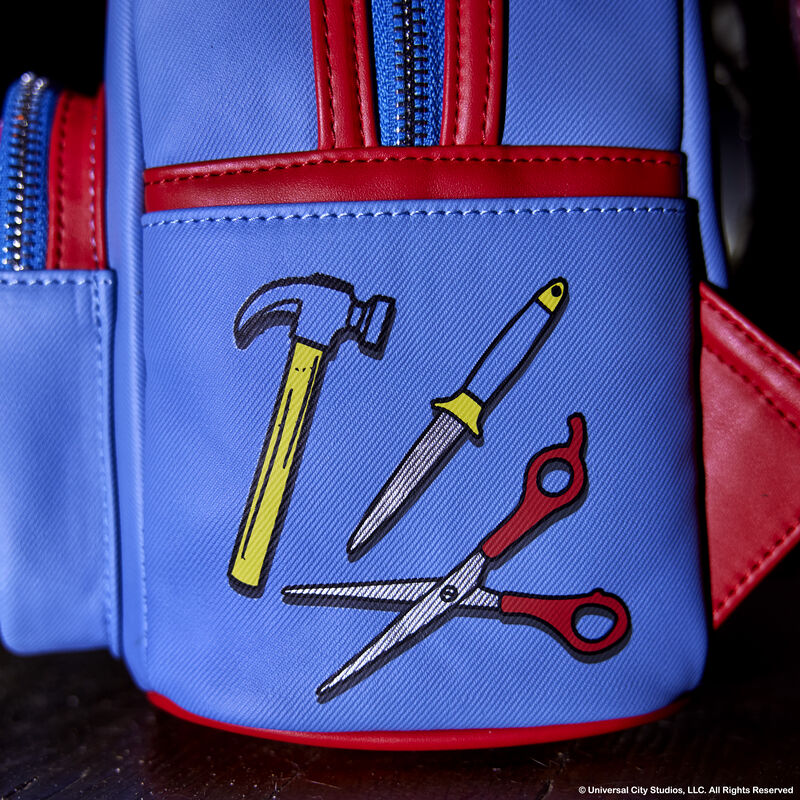 Conviértete en el mejor amigo para siempre con nuestra exclusiva mini mochila lenticular Loungefly Chucky. En la parte delantera de este accesorio, la cara inocente de Chucky cobra vida y se eleva sobre el borde superior de la mochila. El bolsillo frontal con cremallera presenta detalles del conjunto de mezclilla de Chucky, incluidos botones reales y las palabras "Good Guys" bordadas justo debajo. Sin embargo, si mueves la bolsa para obtener una vista lenticular alternativa, ese rostro inocente adquiere un aspecto más siniestro. Los detalles más divertidos continúan en los bolsillos laterales. En un lado, encontrarás accesorios para el muñeco Chucky, como una gorra de béisbol, una pelota y un bate. En el otro bolsillo encontrarás un martillo, un cuchillo y unas tijeras. Las palabras "Él te quiere como mejor amigo" se materializan en la parte posterior. Lleva este accesorio de muñeca a todas tus citas para jugar favoritas o simplemente visita tus lugares favoritos con el personaje.