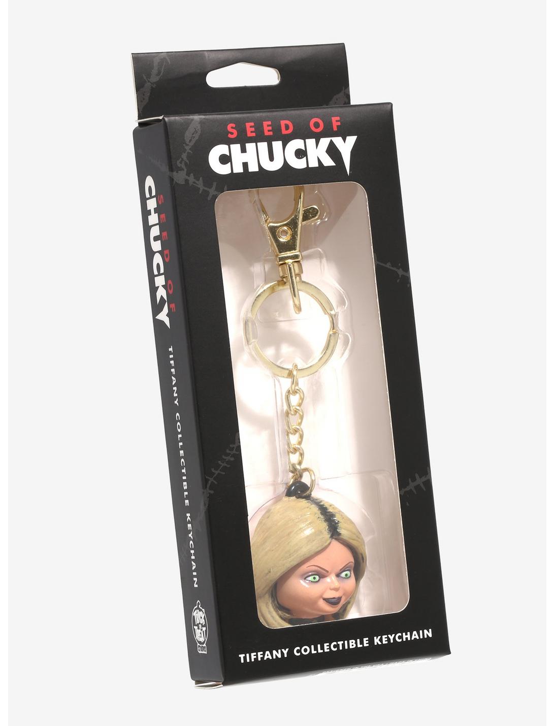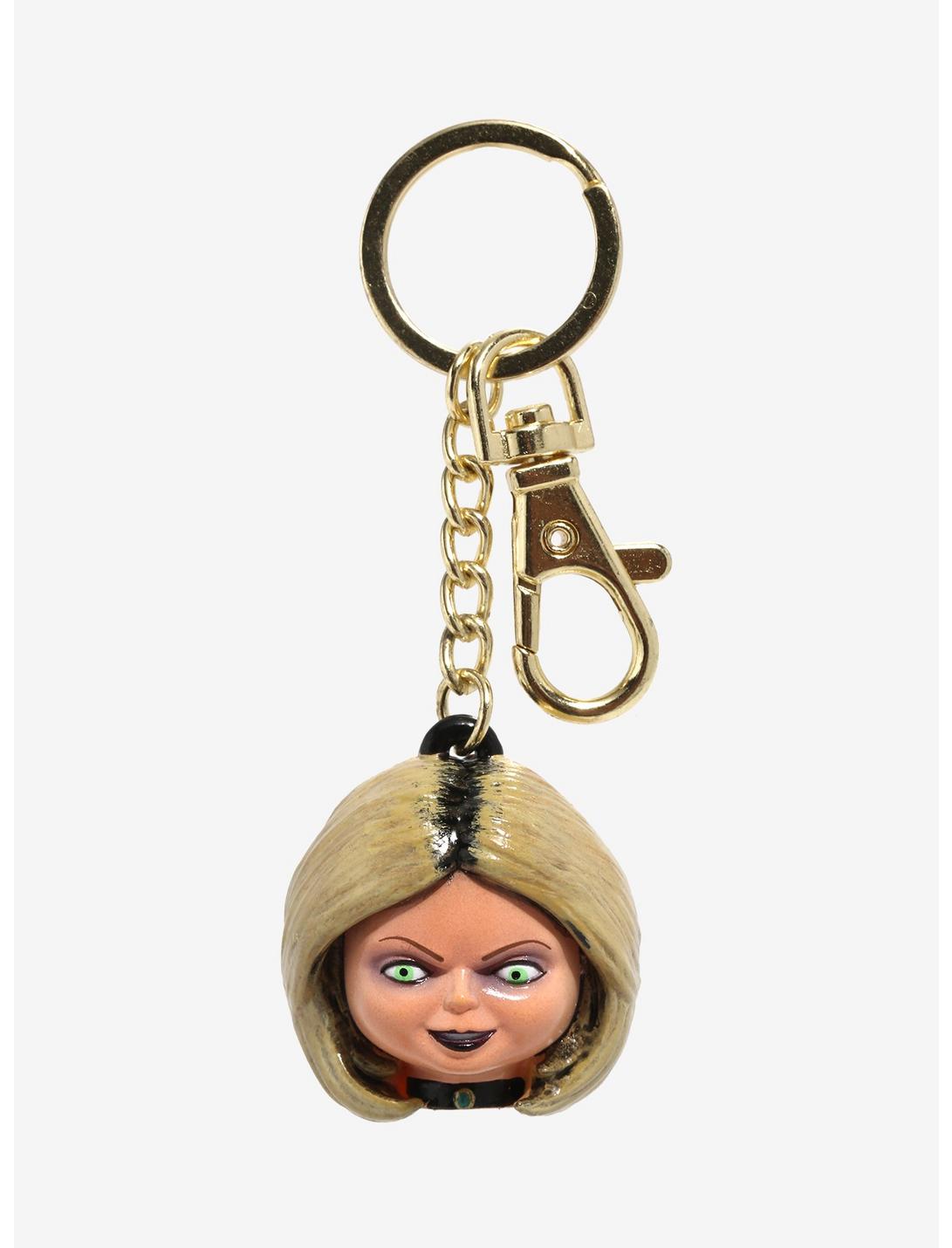 ¿La mejor manera de evitar que Tiffany encuentre más víctimas? ¡Manteniéndola cerca con este llavero Seed of Chucky! Con un dije figurativo de la cabeza de Tiffany unido a una cadena dorada. Viene con llavero y gancho de gatillo.