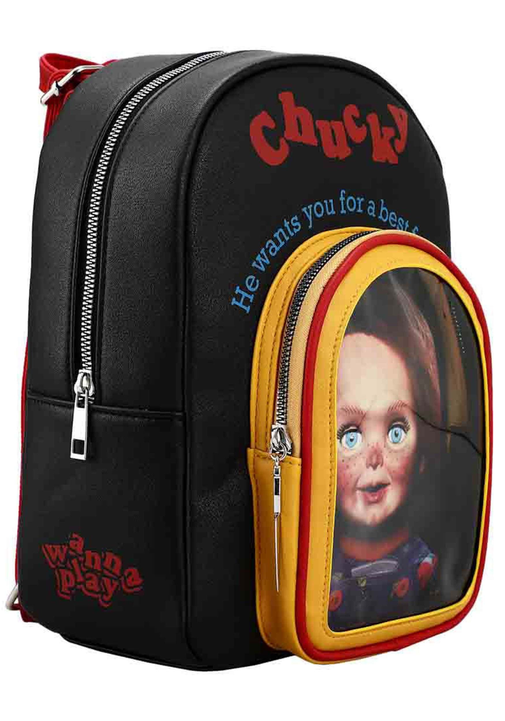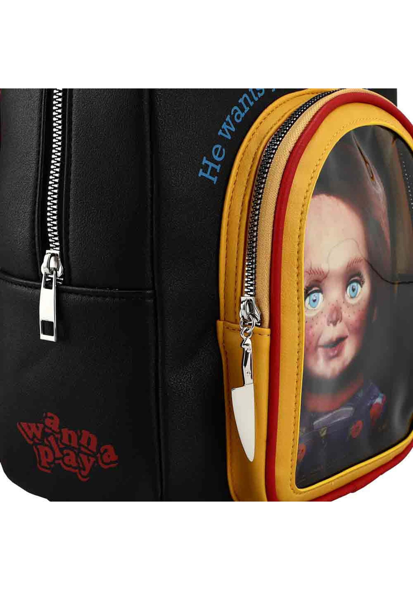 Esta es una mini mochila de bolsillo transparente Chucky Toy Box.