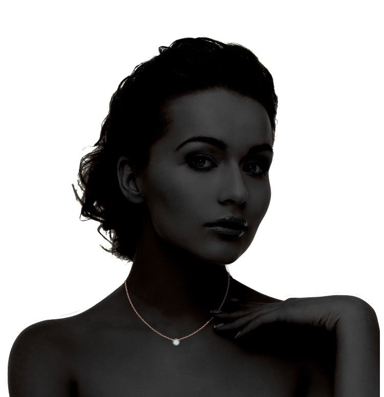 Llego la tendencia en moda holografica , que esperas para estar a la moda con este hermoso collar de piedra ópalo Holografico circular , bañado en oro de 22k