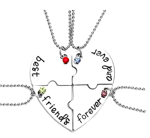 - Diseño único: collares a juego para 4 mejores amigos, significa que los mejores amigos están siempre juntos, estoy incompleto sin ti. Grabado con el "best", "friend", "forever" y "and ever"; te recuerda la amistad eterna entre mejores amigos