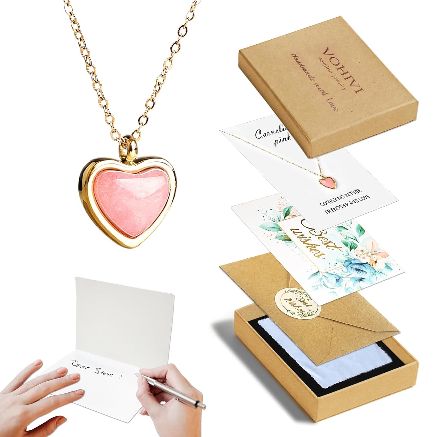 【Tamaño y material】Collar con colgante de corazón rosa de 17.7" + 2" de extensión, se adapta a la mayoría de las niñas y mujeres. Diseño de cierre de mosquetón, fácil de abrir y cerrar. Y la cadena es delicada pero fuerte y no se rompe fácilmente. Collar de cornalina con colgante de corazón chapado en oro de 18 quilates y decorado, el color durará mucho tiempo sin deslustrarse. Sin níquel ni plomo, no irrita tu piel.