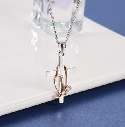 - Collar de enfermera con estetoscopio entrelazado con la cruz que simboliza el cristianismo. Collar de cruz de estetoscopio para enfermeras, médicos o simplemente cualquier persona en general en el campo médico.