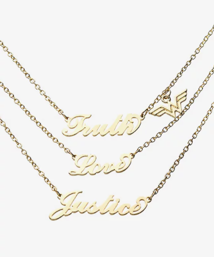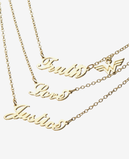 Defiende la verdad, el amor y la justicia, ¡y úsala también! Este collar a capas de Wonder Woman en tono dorado representa los valores de la radiante superheroína DC en cada cadena de diferentes longitudes, todos unidos entre sí para hacer el accesorio definitivo.