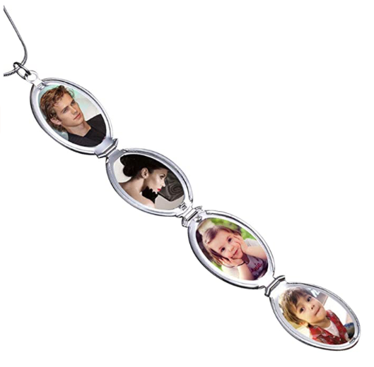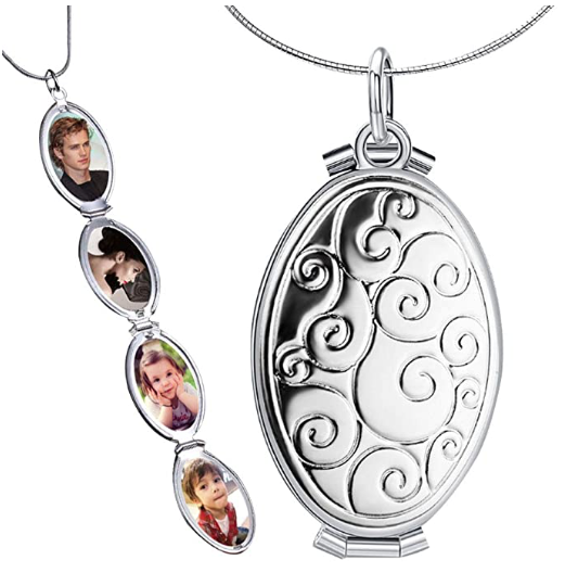 - Medallón ovalado de escamas de pescado con 4 ranuras que pueden contener 4 fotos de un ser querido, este exclusivo diseño de colgante de foto te da una sorpresa inesperada