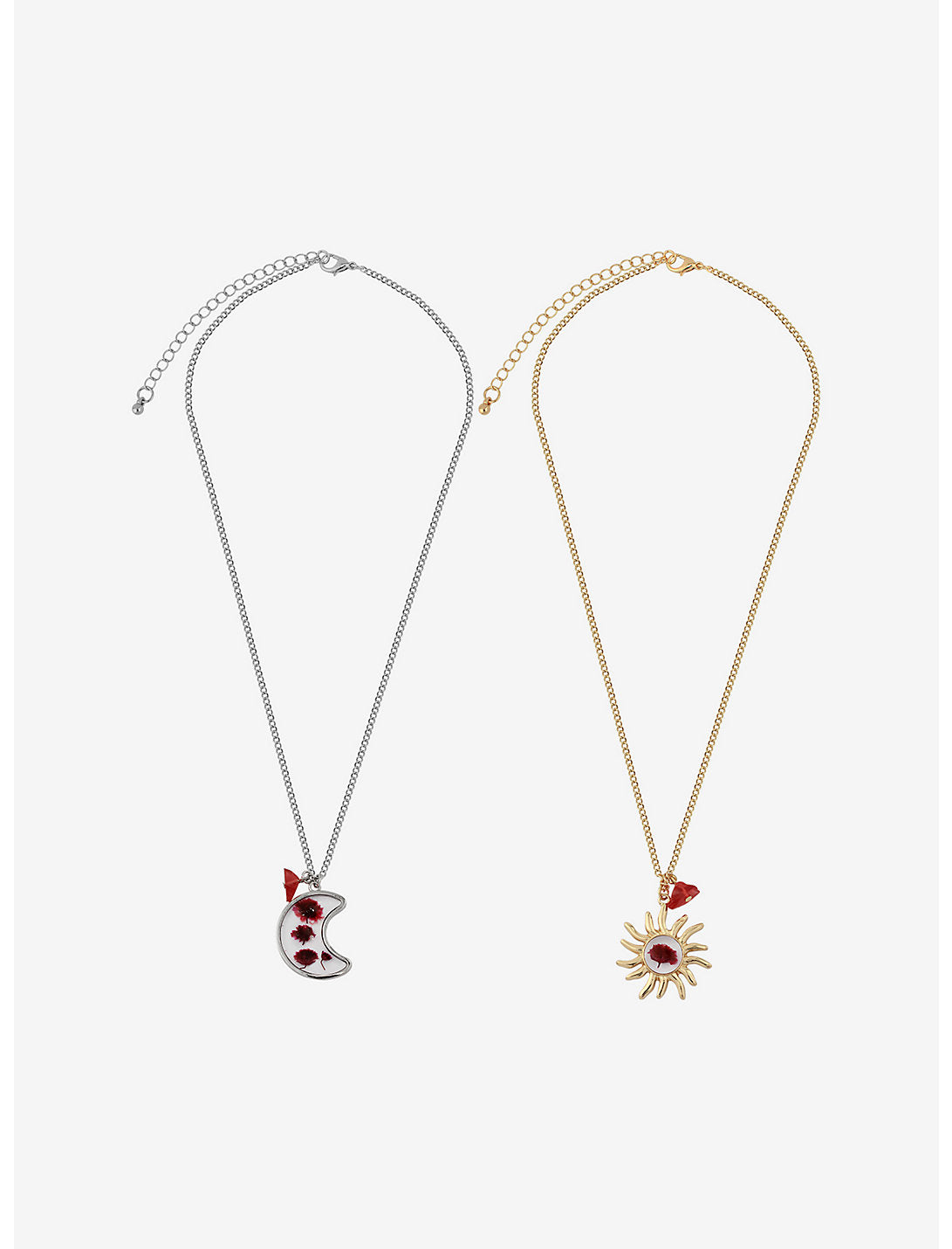 ¡La amistad es mágica! Celebra la energía que tú y tu mejor amiga comparten con nuestro lindo juego de collares de mejores amigos. Recibirás un collar plateado con colgante de luna y un collar dorado con colgante de sol, ¡ambos con detalles florales secos!