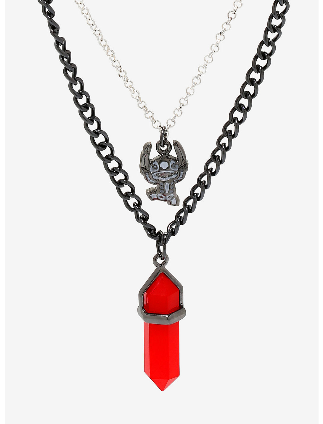 Mischievous Stitch aporta un poco de nerviosismo a tu look. Esta gargantilla de piel sintética negra tiene tachuelas y ojales de color rojo metálico. Hay dos cadenas adjuntas, una tiene un encanto de Stitch de esqueleto y la otra tiene un cristal sintético rojo.