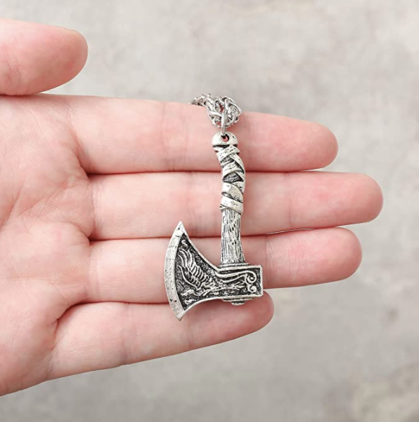 - Tamaño y longitud: el colgante de hacha mide 1.6 x 0.8 in, la longitud de la cadena es de 19.7 in