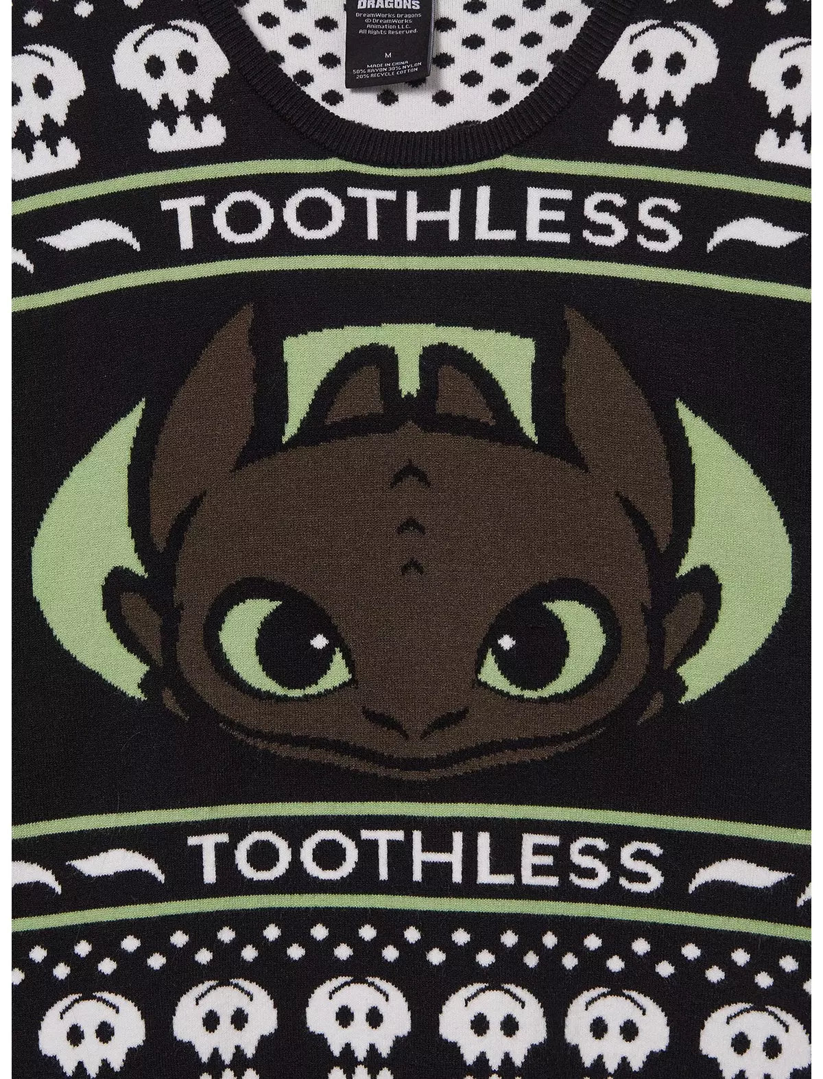 ¡Pasa unas vacaciones en Berk con este suéter de Cómo entrenar a tu dragón! Con estampados de llamas y dragones, esta acogedora prenda exterior muestra a Toothless debajo de su nombre, perfecta para cualquier fanático de los vikingos.
