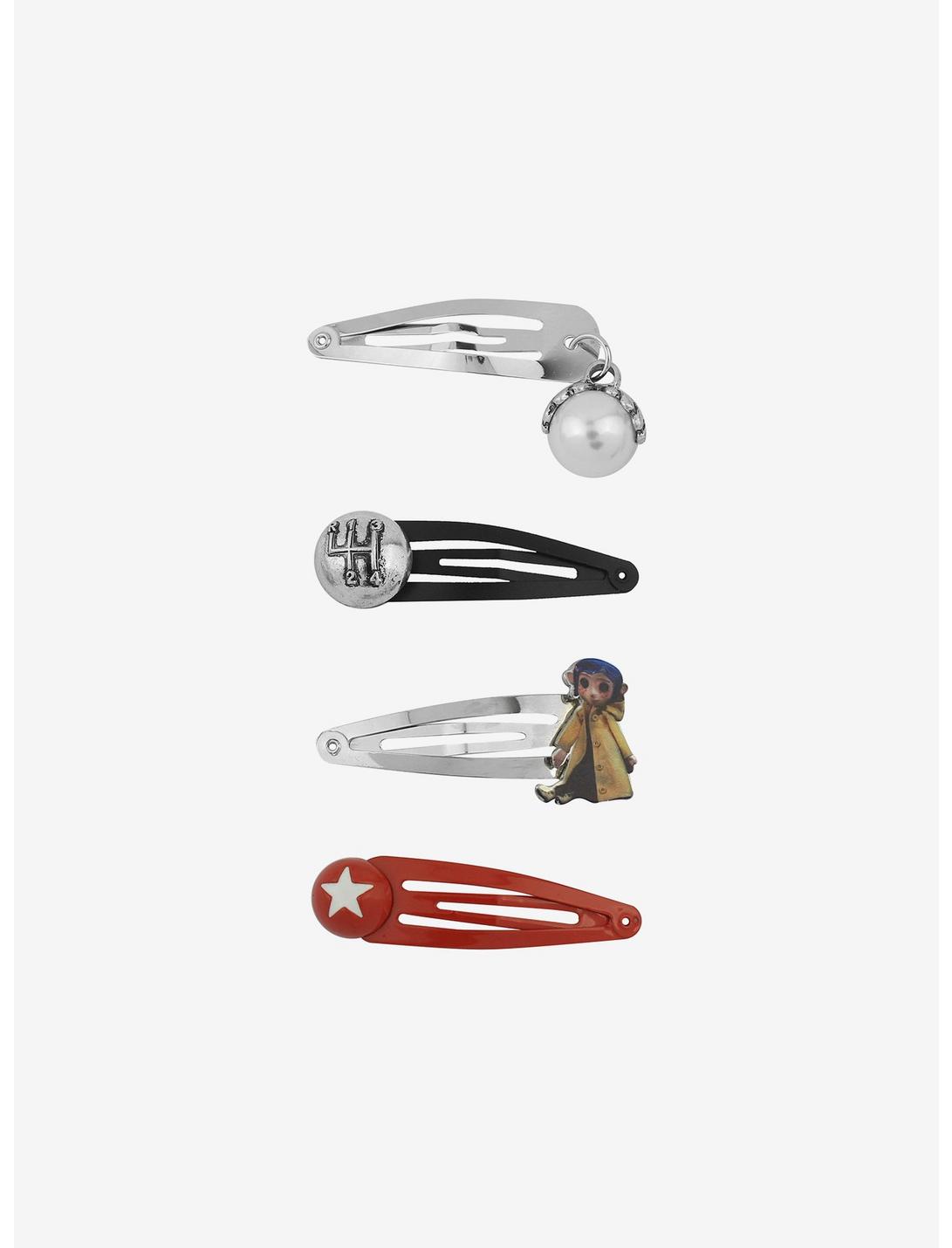 ¡Luce tan lindo como un botón cuando ingresas al Otro Mundo con estas pinzas para el cabello de Coraline! Con dijes y detalles de íconos de la película.