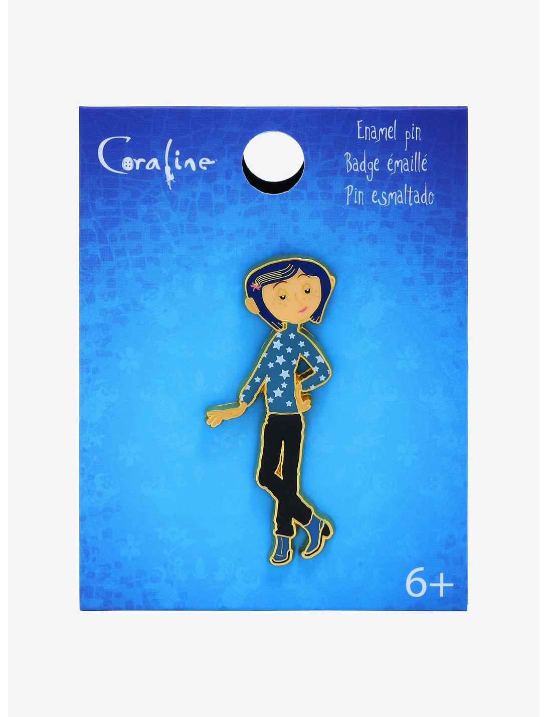 Coraline ha encontrado otra entrada a un mundo alternativo, y esta vez, ¡está en tu colección de pines! Inspirado en la querida película animada de Laika, este pin esmaltado presenta un gráfico de retrato de Coraline, luciendo su suéter con estrellas azules mientras posa lista para disfrutar de su escondite de los Otros en su bolso, chaqueta o tablero de corcho.