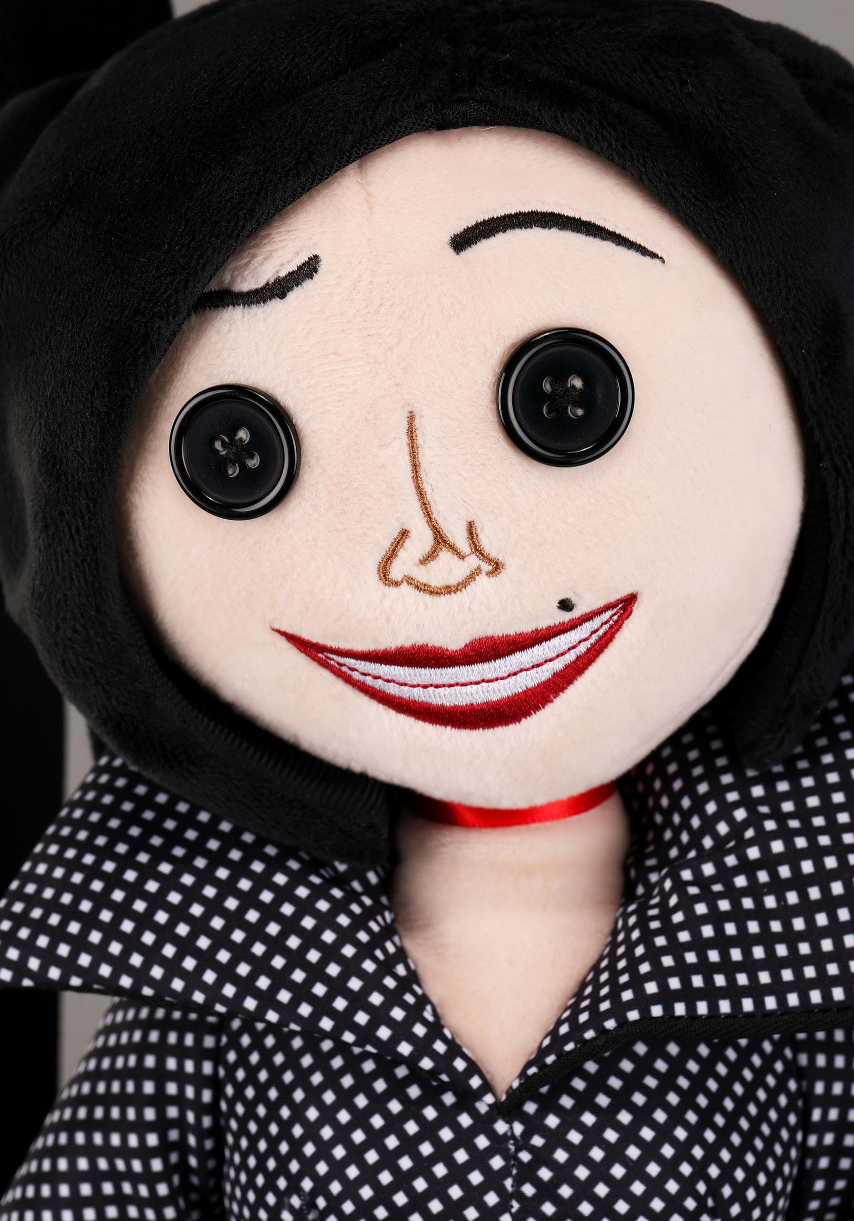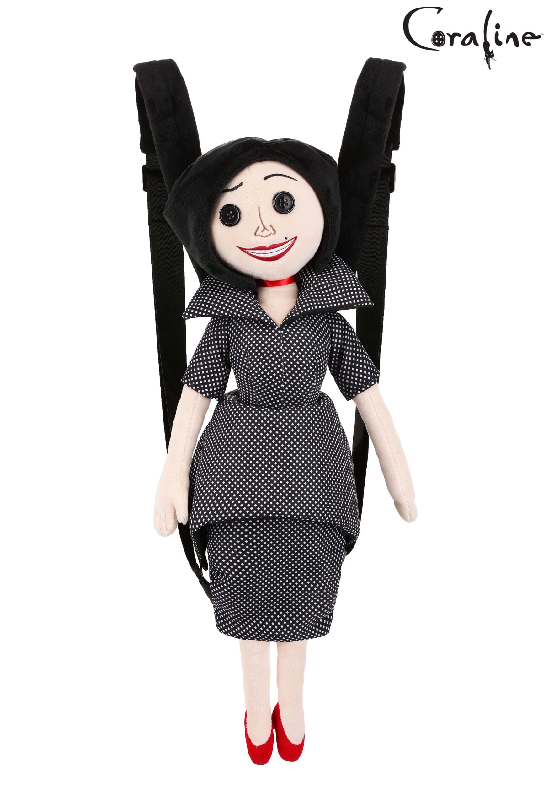 La mochila de velboa rellena de fibra tiene rasgos faciales bordados y ojos de botón.