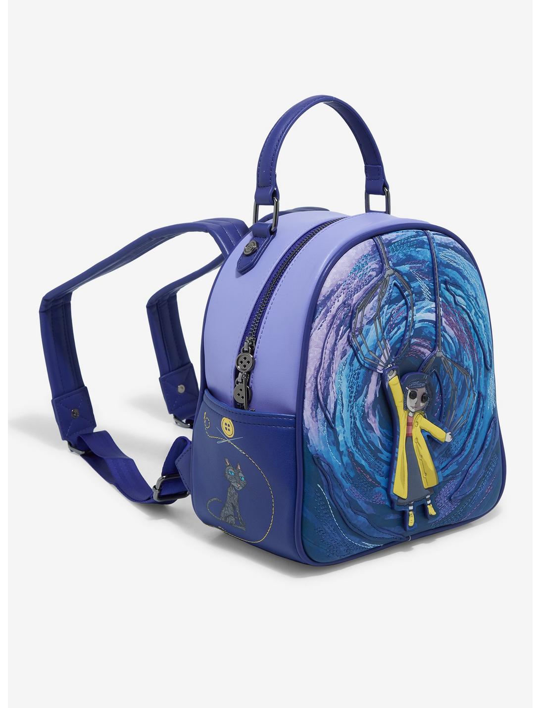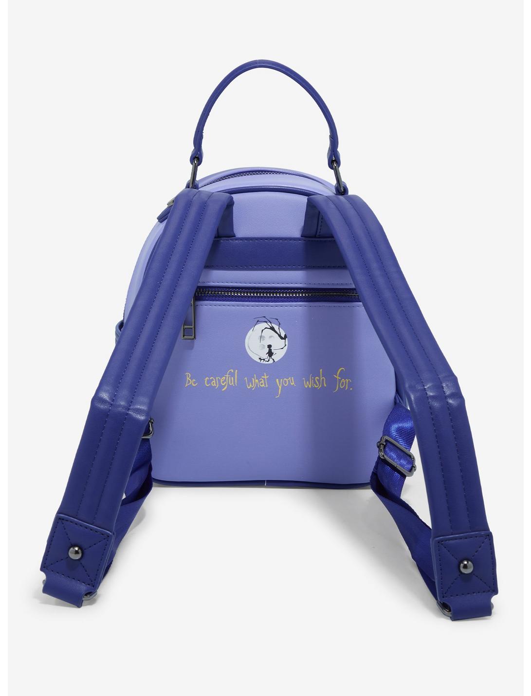 ¡Empaca para un viaje al Otro Mundo con esta mini mochila inspirada en Coraline! Con detalles bordados y apliques que componen el fondo del túnel, el frente de este bolso incluye apliques de Otras manos de Madre sosteniendo una muñeca Coraline. Con las letras "Be Careful What You Wish For" debajo de un diseño de luna en la parte posterior, este bolso incluye un tirador de cremallera con botón de metal, bolsillos laterales y correas ajustables, perfecto para los fanáticos de la película.