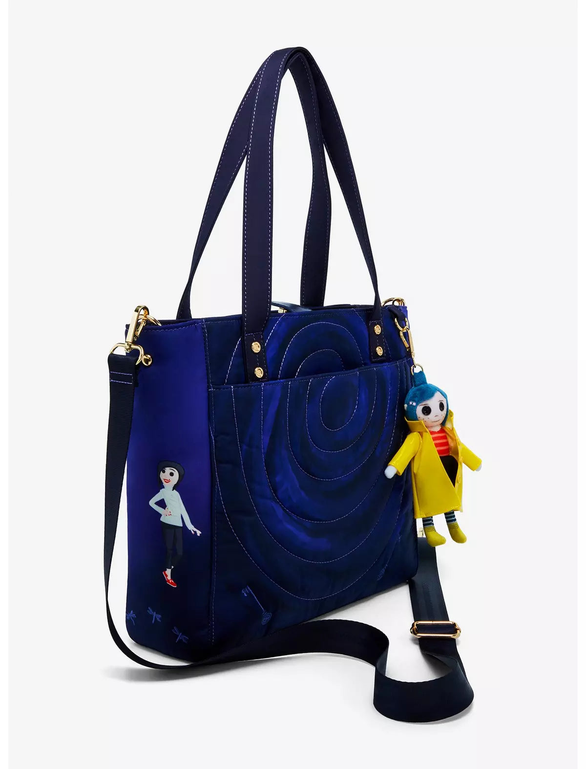 ¡Prepárate para una gran aventura con este bolso Coraline! Con un diseño estampado hinchado del túnel al Otro Mundo en ambos lados, los lados incluyen detalles impresos de personajes. Con cierre magnético, asas superiores, una correa cruzada extraíble y bolsillos exteriores, este bolso incluye un monedero de gato extraíble y un llavero de muñeca Coraline extraíble.