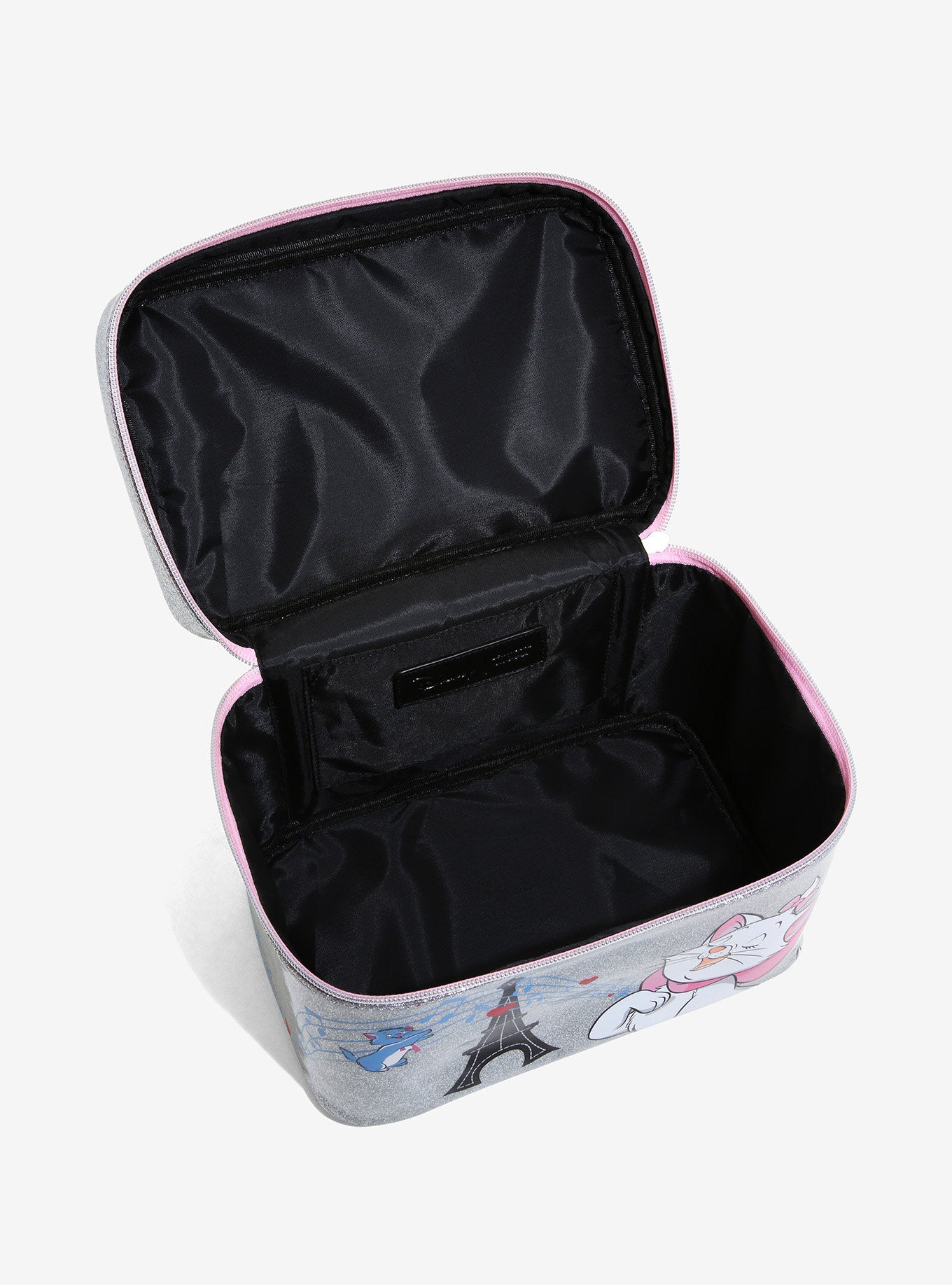 ¡La música sigue a Marie donde quiera que vaya, gracias a este neceser plateado Aristogatos de Danielle Nicole! En el frente aparece la adorable gatita blanca del clásico de Disney, cantando una melodía con la ayuda de su hermano. Tiene un acabado brillante y un mango con diseño de piano.