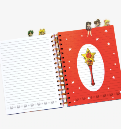 ¡Las princesas del sistema solar están aquí para luchar contra el mal! ¡Tuxedo Mask también está aquí para ayudar! Este cuaderno de Sailor Moon presenta los Sailor Guardians en la portada y en los separadores de secciones. ¡Luna y Artemis aparecen en la parte posterior!