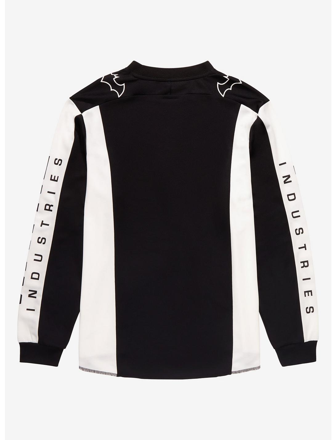 ¡Ponte deportivo y recorre las pistas al estilo de Gotham City con esta camiseta inspirada en el motocross! Con logotipos de murciélagos de Batman con contorno blanco en el pecho y los hombros, las letras llamativas de "Wayne Industries" también aparecen en las mangas y en el frente de esta camiseta. Esta camiseta también luce un cuello de polo para combinar el look de cómic inspirado en las motocicletas.