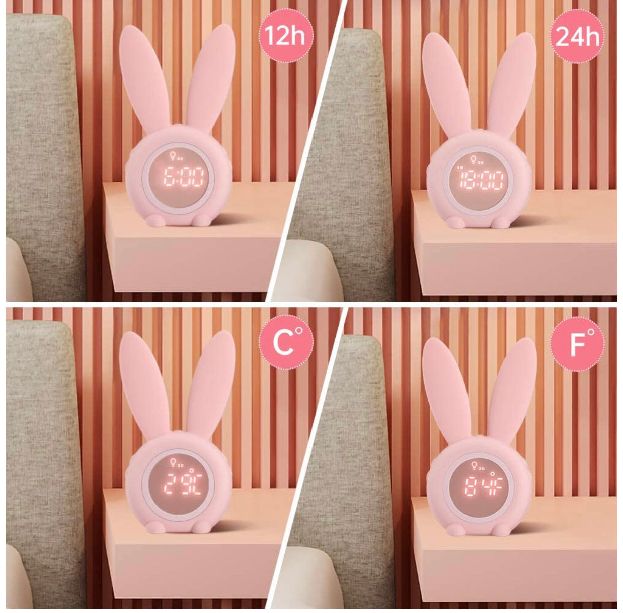 - Reloj inteligente: cuando se utiliza sin cable, el reloj de conejo estará en modo de ahorro de energía con pantalla de apagado automático, puedes despertar la pantalla de tiempo haciendo un sonido cerca del reloj o tocando en él. La batería recargable interior garantiza semanas de uso una vez completamente cargada.