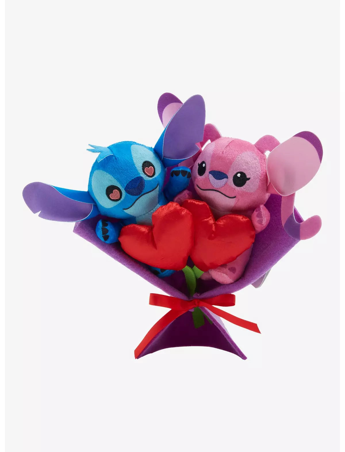 Los ramos de flores son tan del año pasado. ¡Expresa tu amor con algo que durará para siempre! De Lilo & Stitch, este ramo presenta peluches de Stitch y Angel con corazones en el centro.