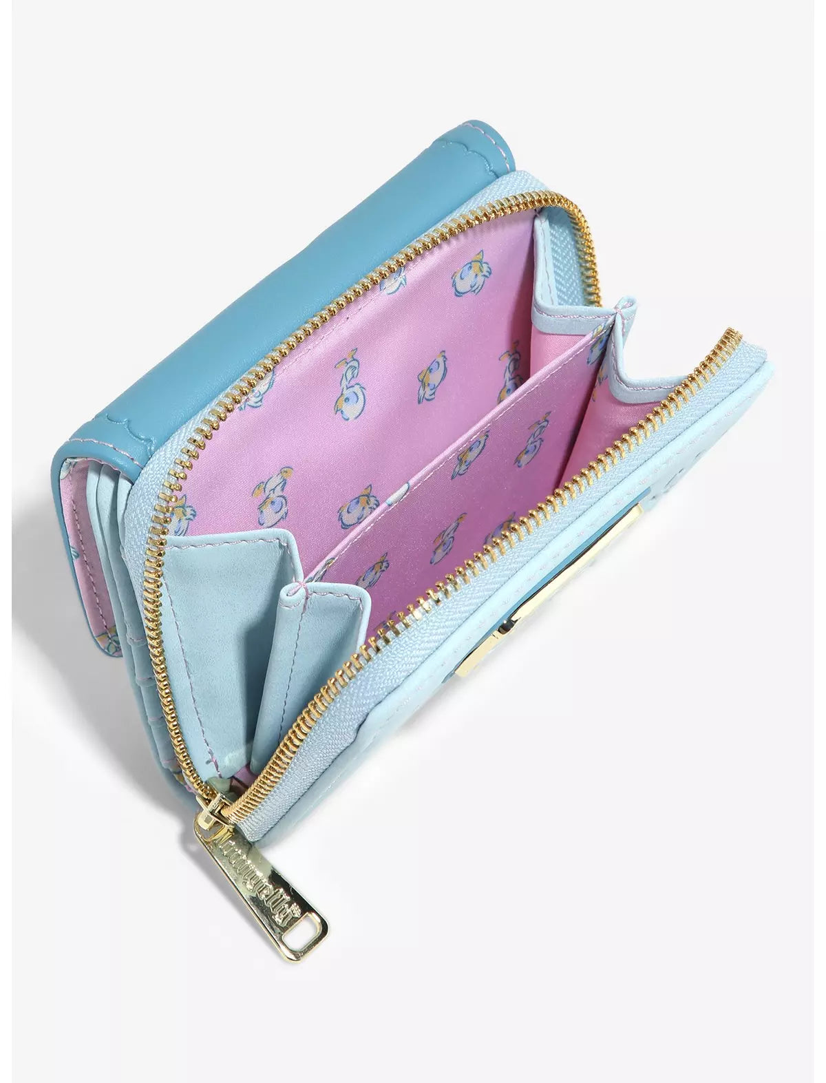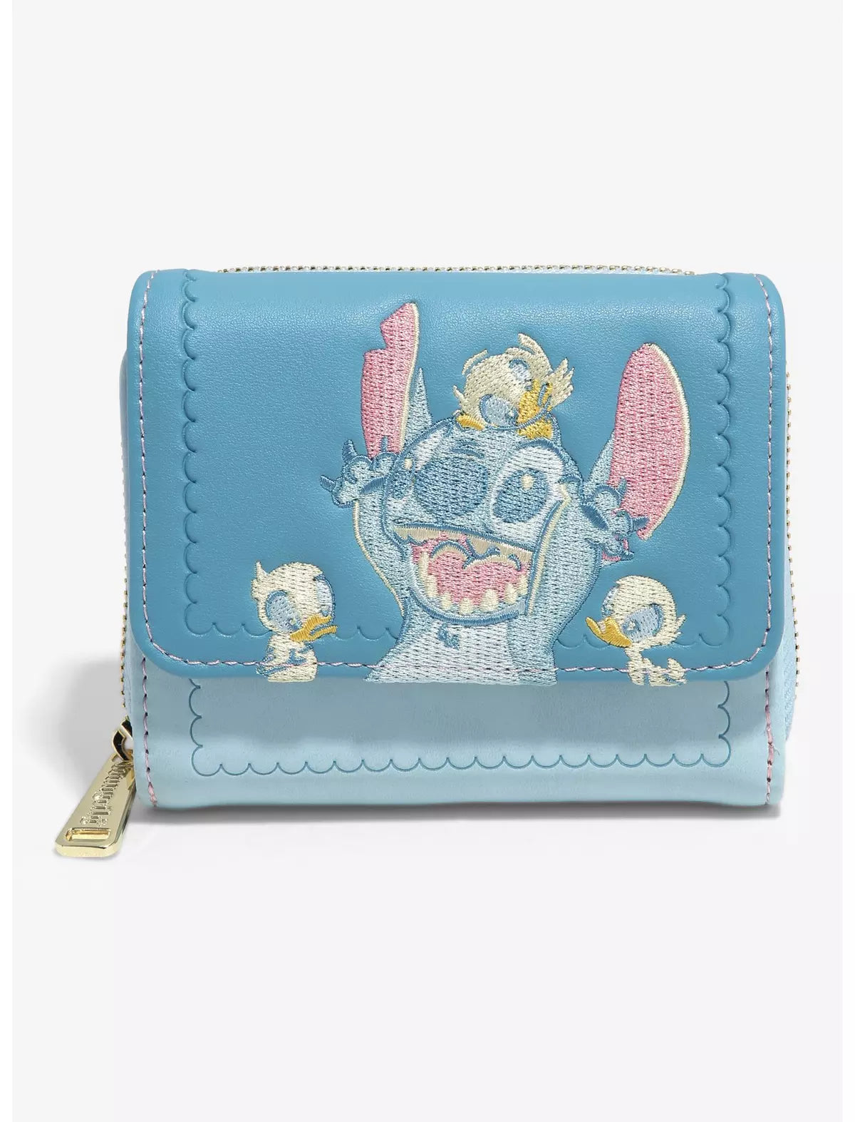 ¡Agrega un toque de Disney a tu día con esta billetera de Lilo & Stitch! La tela azul cielo está bordada con Stitch y tres patitos, mientras que Scrump y un patito están impresos en el otro lado. Con cinco ranuras para tarjetas, un compartimento para billetes, una funda para identificación y una cremallera dorada para mantenerlo todo seguro, esta billetera es perfecta para guardar sus tesoros.