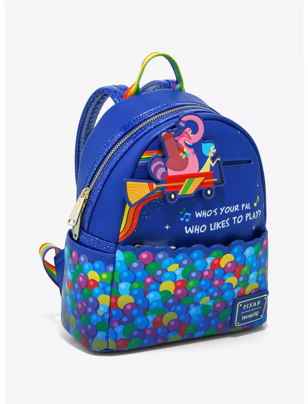 ¡Lleva esto a la luna por nosotros! Esta imaginativa mochila Inside Out presenta a Joy y Bing Bong a bordo del cohete casero de Riley, diseñado como un aplique móvil para mayor diversión. El bolsillo delantero tiene el estilo del Memory Dump, que se envuelve alrededor de los lados hasta que llega al nombre de Bing Bong en la parte posterior. Las brillantes correas de PVC se funden en arcoíris: ¡una divertida adición a cualquier armario!