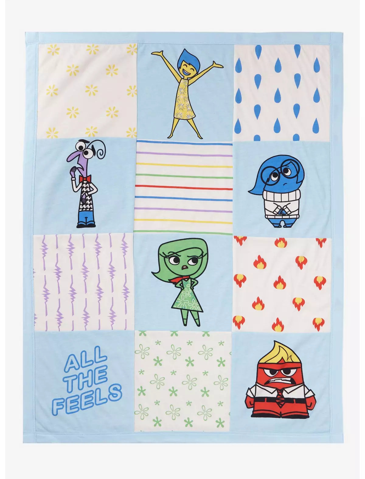 ¡Estamos sintiendo todas las emociones con esta manta para bebé de Inside Out! Esta colcha con forro de sherpa presenta todas tus emociones favoritas en sus propias cajas, unidas por detalles como las lágrimas de tristeza o las llamas de ira. ¡Agrega un toque de Disney a cualquier guardería!