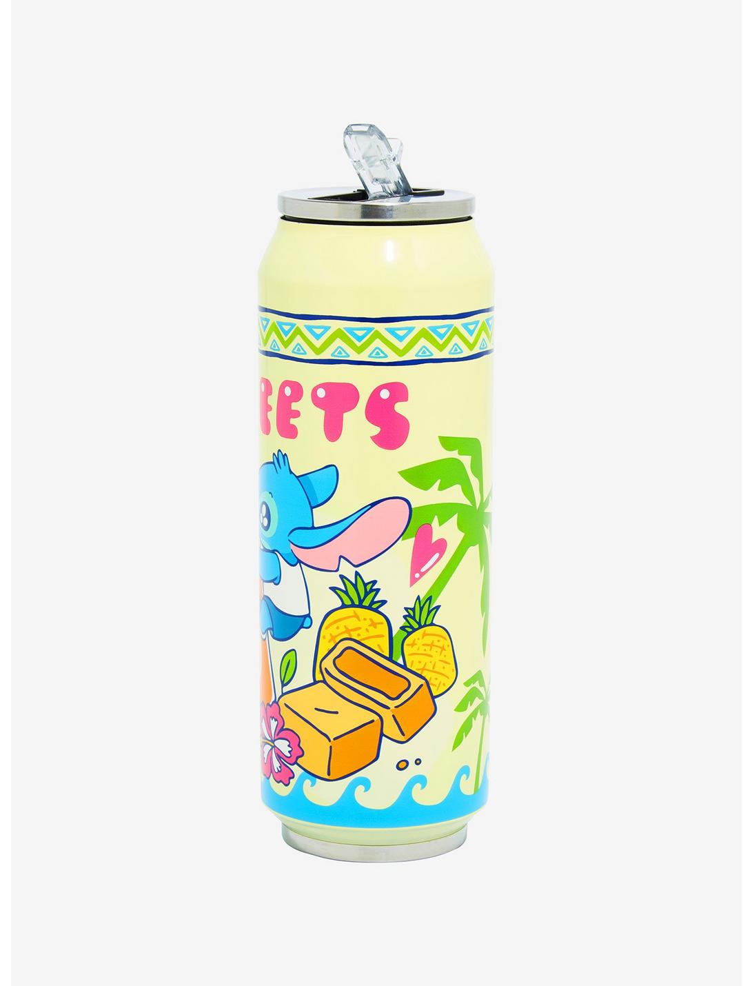 ¡A Stitch le encantan los dulces, igual que a ti! Esta botella de agua alta en forma de lata de refresco tiene doble pared y una tapa extraíble y una pajita abatible. Muestra a Stitch bebiendo boba y rodeado de dulces tropicales.