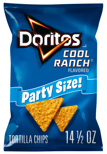 Con un condimento que tiene un toque de bondad, DORITOS® Cool Ranch ha complacido a las masas durante décadas. ¡No hay nada más clásico que una bolsa azul de DORITOS®! Doritos Tortilla Chips Cool Ranch Flavored (bolsa de 14.5 oz) ofrece un giro audaz y fuerte en el clásico chip de tortilla. Cada chip está cubierto con un sabroso condimento ranchero que ofrece un sabor deliciosamente picante y un crujido satisfactorio.