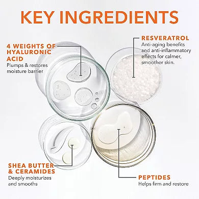 Descripción: Formulada con péptidos y ácido hialurónico en distintas formas moleculares, esta crema rellena visiblemente las líneas finas y refuerza la barrera de humedad. Las ceramidas, la manteca de karité y el resveratrol encapsulado potencian la hidratación y favorecen una piel con mayor elasticidad y firmeza con el uso continuo. Deja la piel suave, flexible y lista para un maquillaje impecable.