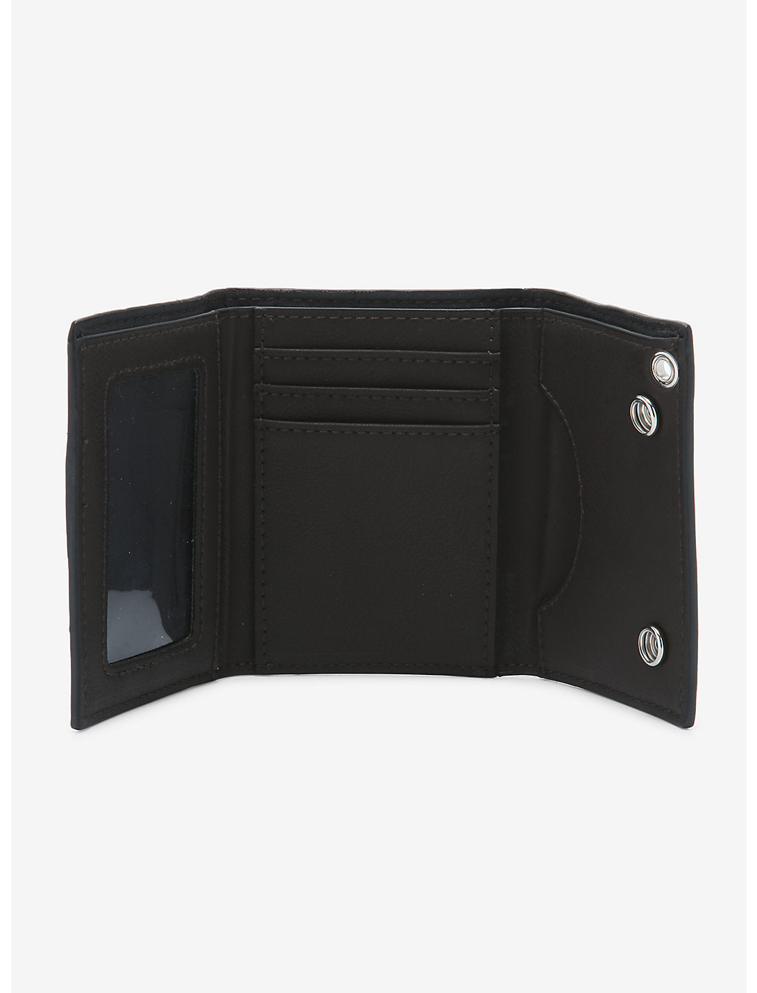 Una burla de Super Saiyan Rosé Goku Black seguramente mantendrá tu billetera segura. De Dragon Ball Super, esta billetera triple presenta estampados de Goku Black en forma de Super Saiyan Rosé, además de detalles de texto en japonés rosa abullonado cerca de los cierres de doble botón a presión. Viene con una pantalla de identificación transparente, 5 ranuras para tarjetas, una billetera y una cadena.