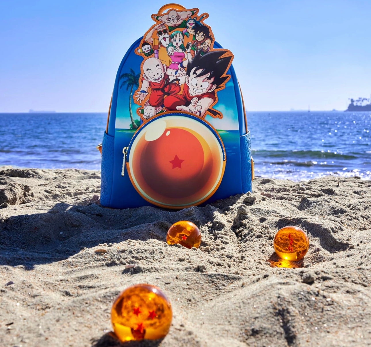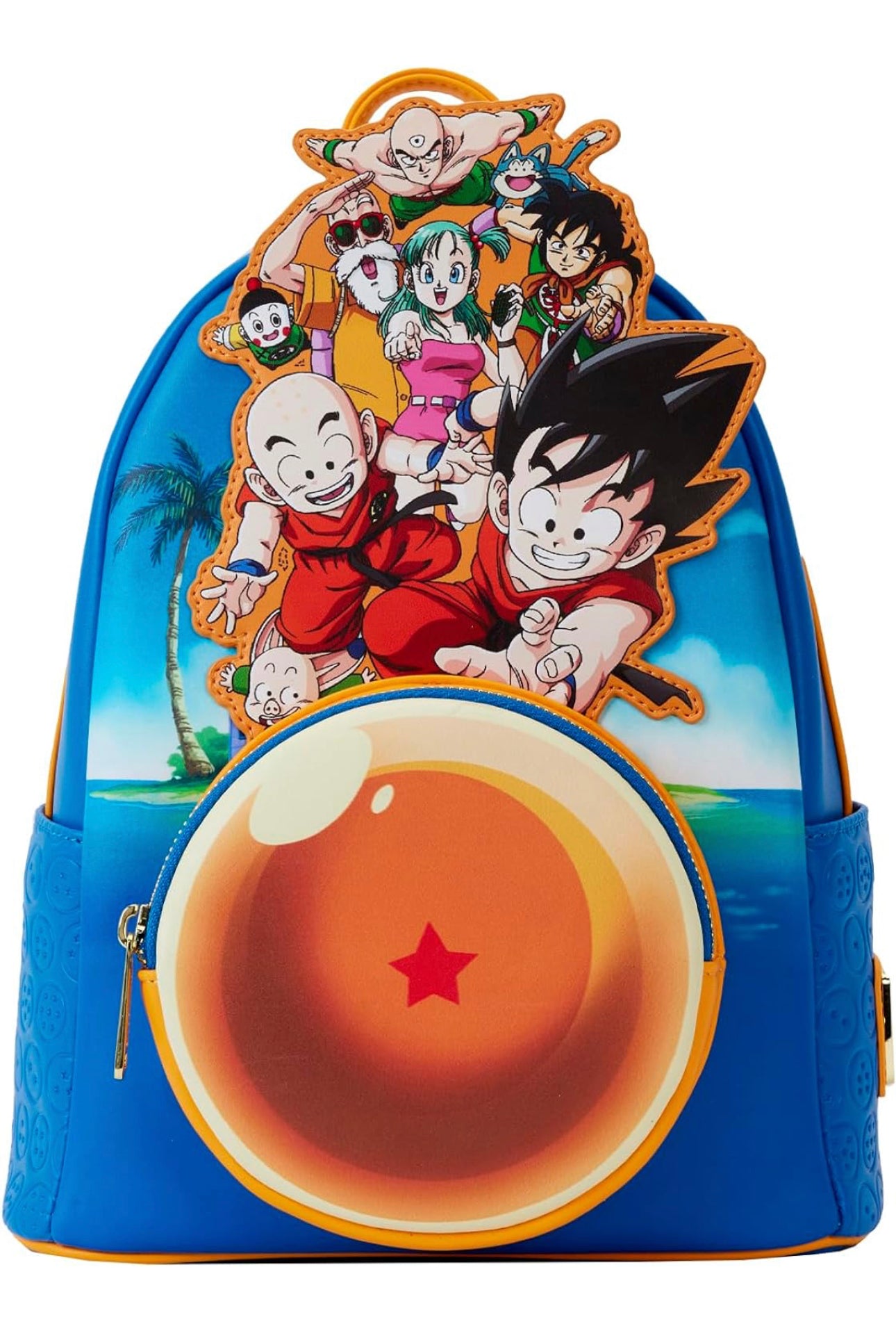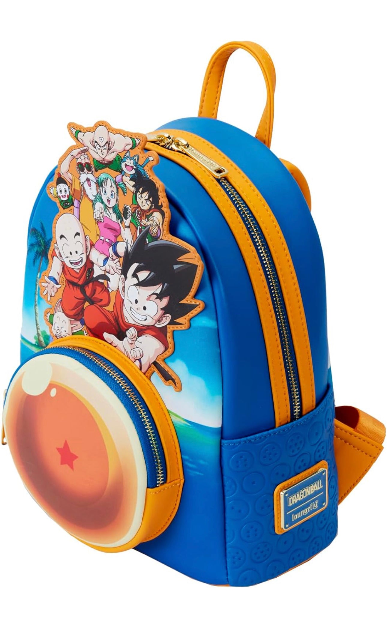- Con detalles increíbles para dar vida a Goku y amigos de Dragon Ball, esta mini-mochila Loungefly está hecha de cuero vegano (poliuretano), tiene un compartimento frontal con cremallera, bolsillos laterales y correas traseras ajustables.