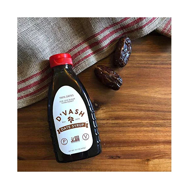 Paleo. Vegano. 25% menos de azúcar que la miel. Proyecto no modificado genéticamente verificado. nongmoproject.org. 100% Dátiles. Est. 2016. El jarabe de dátiles D'vash está hecho 100% de dátiles y es un superalimento delicioso que data de miles de años en el antiguo Medio Oriente. ¡D'vash es vegano, no transgénico, paleo y contiene menos azúcar que la miel, el néctar de agave y el jarabe de arce! El saborizante de dátiles D'vash es perfecto para endulzar té o café, hornear deliciosos postres, rociar panqueques o yogur, marinar pollo y carnes, aderezar ensaladas, ¡y más! www.dvashorganics.com. Para recetas y más visítenos en dvashorganics.com.