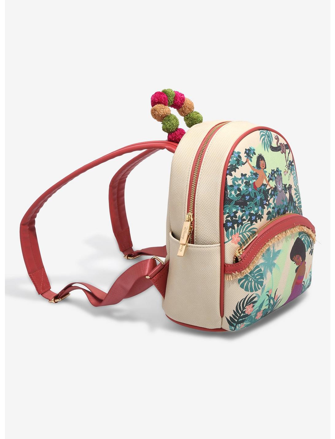 ¡Lleva tus necesidades básicas con facilidad gracias a esta minimochila de Disney de Danielle Nicole! Con un gráfico frontal de Mowgli, Shanti, Baloo y otros amigos de El libro de la selva, este bolso está decorado con detalles de la exuberante flora de la jungla, completo con un forro similar a una falda de hierba en el borde superior del bolsillo delantero y un asa de pompón a juego. mirada salvaje También cuenta con dos bolsillos laterales, herrajes dorados, correas ajustables para los hombros, una insignia de la marca troquelada y un patrón de forro interior de Danielle Nicole.