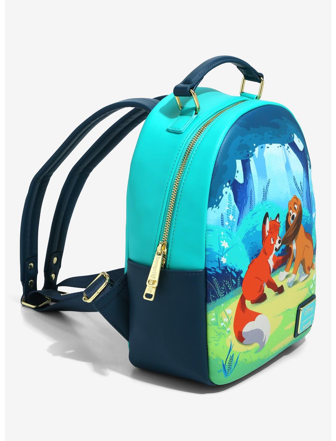 ¡Tod y Copper quieren acompañarte en todos tus viajes con esta minimochila de Disney de Loungefly! El dúo de mejores amigos de The Fox and the Hound posan juntos en la parte delantera de este bolso, jugando en un gráfico de bosque escénico para darle un toque de magia de Disney a cualquier atuendo. También cuenta con una insignia esmaltada de la marca, herrajes en tonos dorados, correas ajustables para los hombros y un patrón de forro interior de flora forestal.