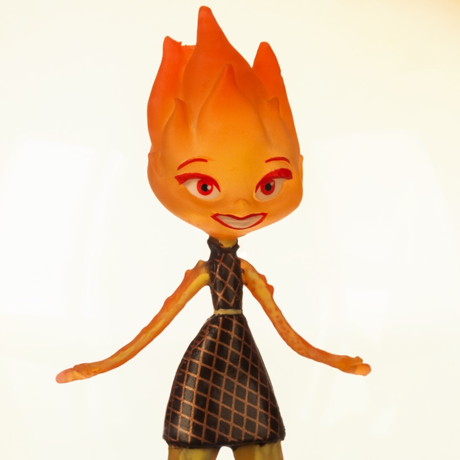 Fuera de su elemento, Wade observa a Ember dentro de una cúpula de vidrio tintado con este pintoresco adorno de cuaderno de bocetos inspirado en Elemental de Disney y Pixar. Las figuras completamente esculpidas son translúcidas para representar sus esencias de fuego y agua, ya que estos opuestos se atraen en su árbol navideño.
