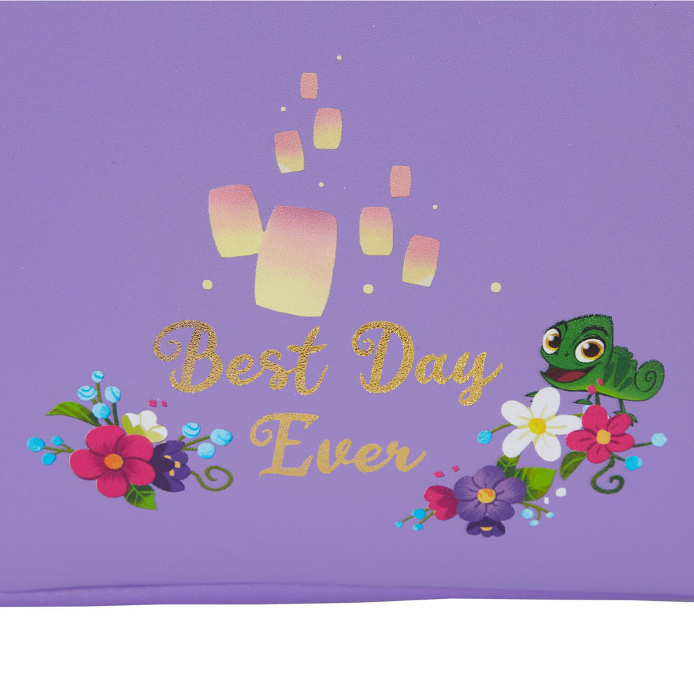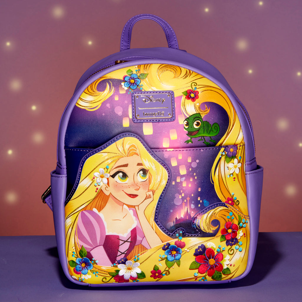 Haz que cada día sea el "mejor día de tu vida" con esta exclusiva edición limitada: la minimochila Tangled Rapunzel Dreams. En el frente de la mochila, Rapunzel sueña con su escape, el cielo se ilumina con linternas. Su cabello dorado enmarca la ventana de la torre, mientras Pascal le hace compañía. Un dije de flor de cuero vegano (poliuretano) completa la escena. En la parte posterior, las linternas brillan sobre las palabras "Best day ever". ¡Las linternas realmente brillan en la oscuridad! Con correas ajustables para los hombros y bolsillos a ambos lados, esta mochila es el accesorio perfecto para cualquier salida a Disney. Este es un artículo exclusivo de Loungefly.com de edición limitada de 1700 piezas, ¡así que actúe rápido antes de que desaparezca para siempre!