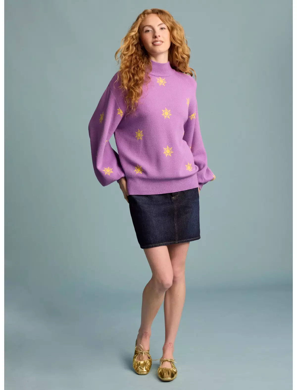 ¡Disfruta de la calidez y comodidad mientras contemplas cómo las linternas iluminan el cielo nocturno! Este suéter de punto de Tangled luce el sol de Corona tejido por toda la prenda y un cuello alto.