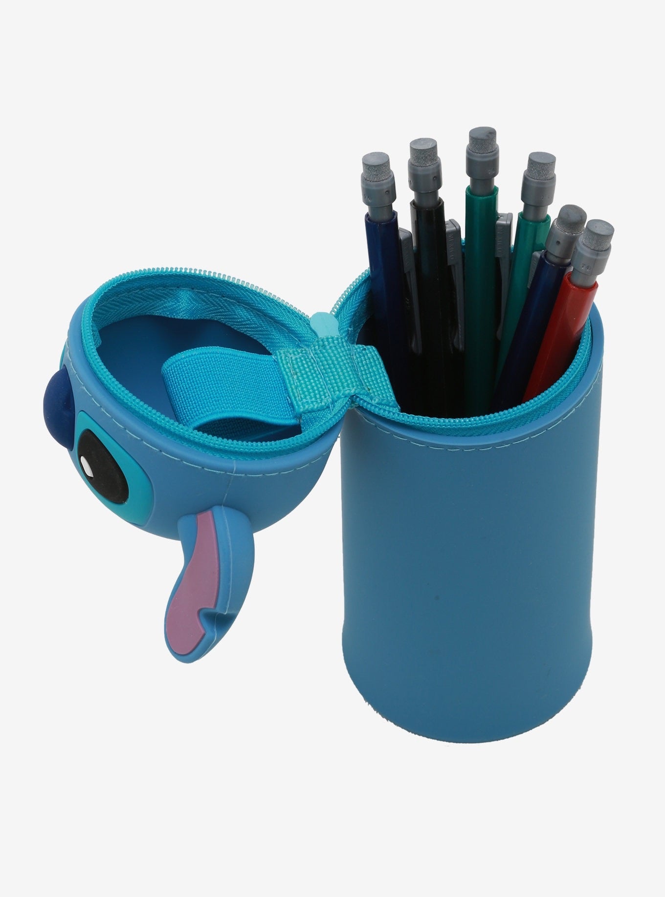 ¡Stitch está listo para guardar todos tus lápices y bolígrafos! Este estuche presenta una pequeña banda elástica dentro de la cabeza para sostener un borrador, una unidad flash USB o cualquier otro artículo pequeño. Presiona la parte inferior para que quede sobre tu escritorio.