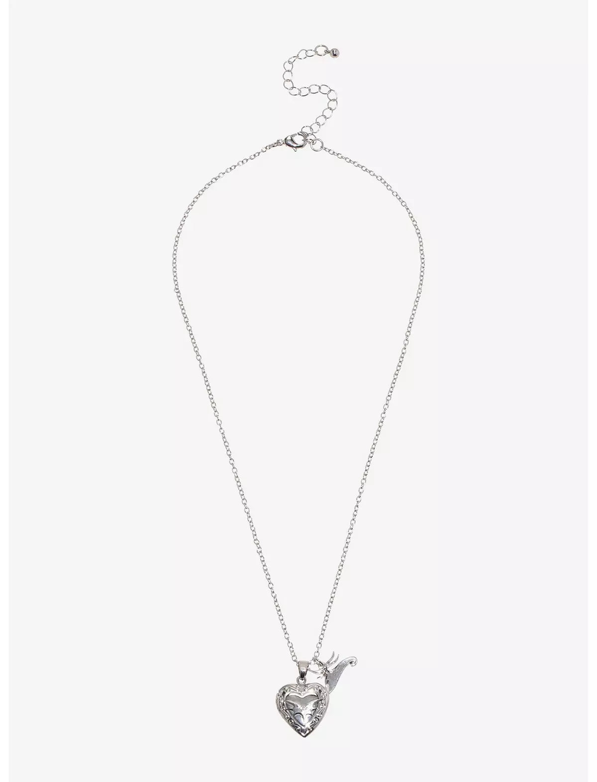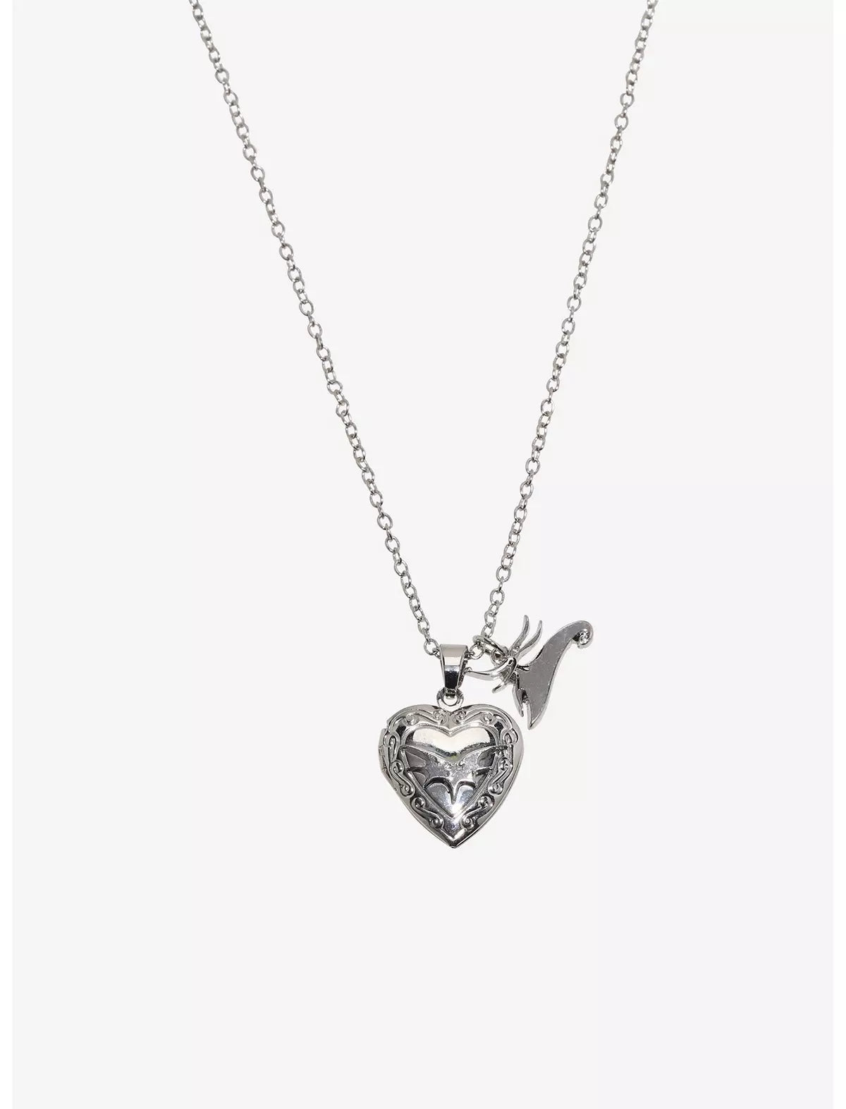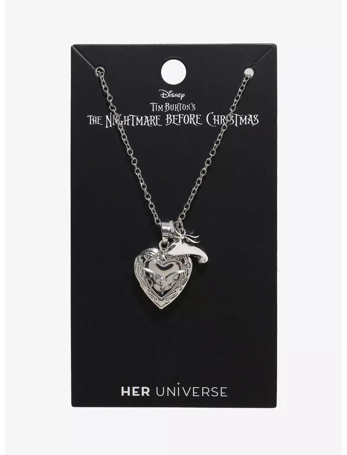 ¡Añade un toque de Halloween Town a tu look con este collar de Pesadilla antes de Navidad! Con un dije de relicario en forma de corazón y un dije de Zero, el relicario se abre para revelar diseños de Jack y Sally, perfecto para los fanáticos de la película.