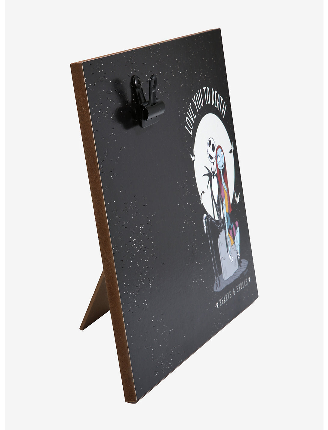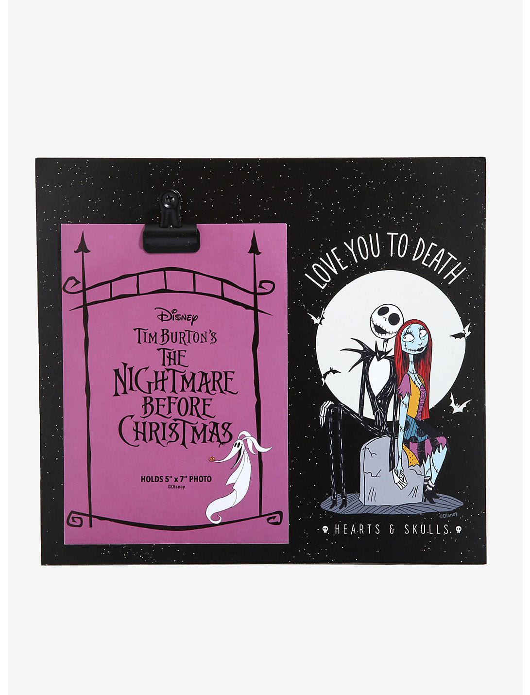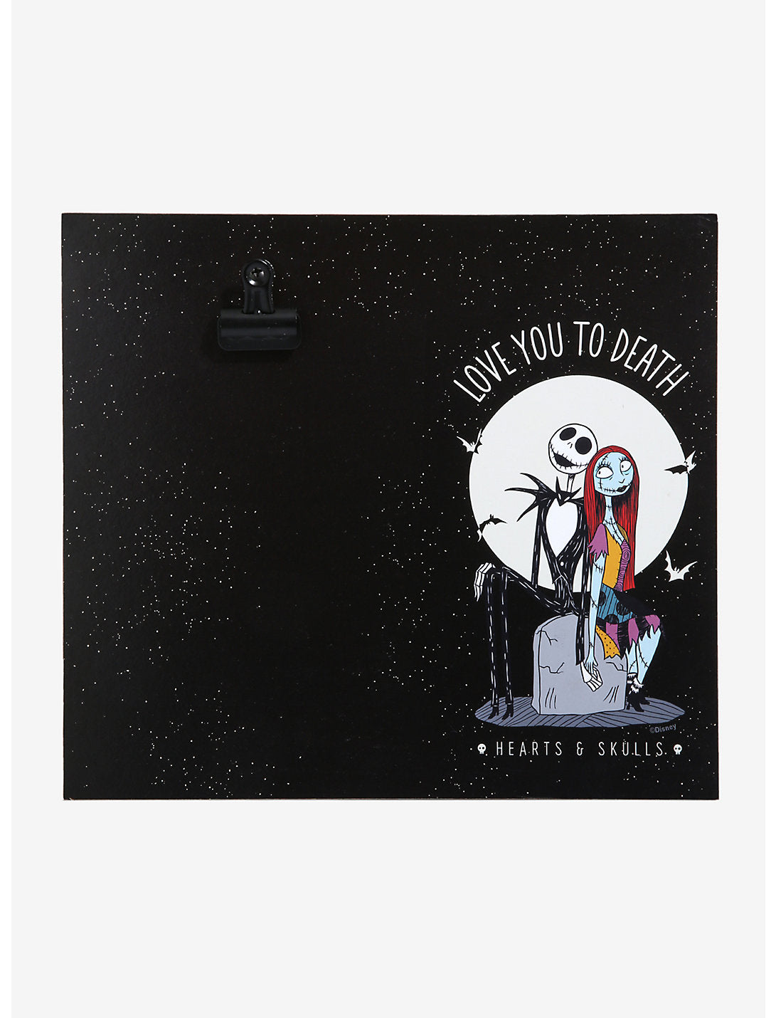 ¡Cuelga una foto de las personas por las que eres absolutamente corazones y calaveras con este marco de fotos de clip de Pesadilla antes de Navidad! Con ilustraciones de Jack Skellington y Sally que lo acompañan entre las letras "Te amo hasta la muerte" y "Corazones y calaveras", este marco de Disney es perfecto para mostrar recuerdos de tus seres queridos hasta la muerte y viceversa.