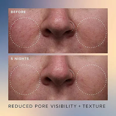 Suero nocturno exfoliante con AHA/BHA, clínicamente probado para suavizar la textura de la piel, reducir la apariencia de poros y revelar un cutis radiante en pocos días. Combina 5 ácidos que entregan 5 beneficios en 5 noches.