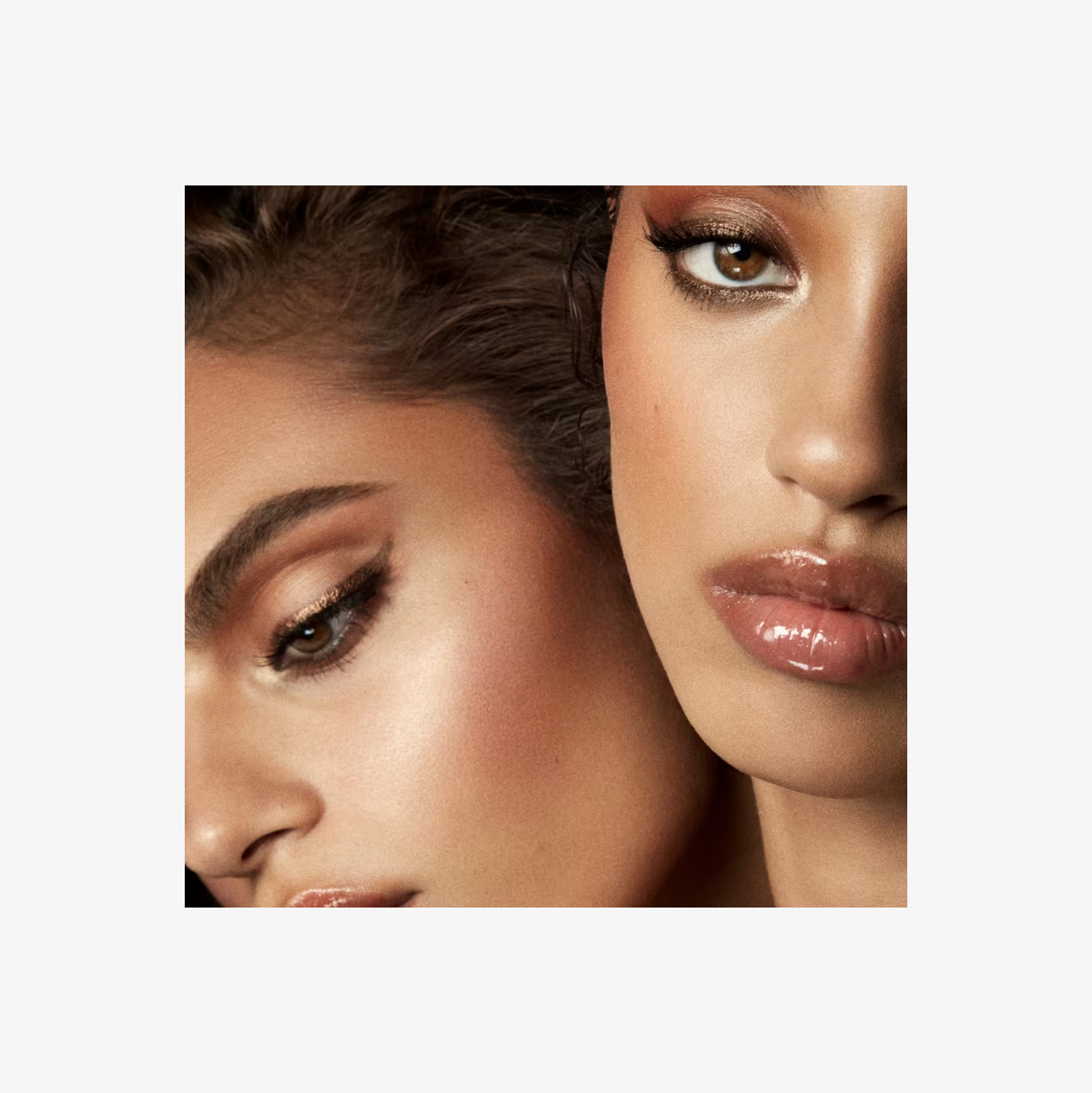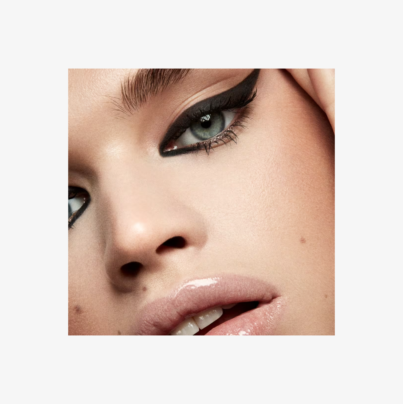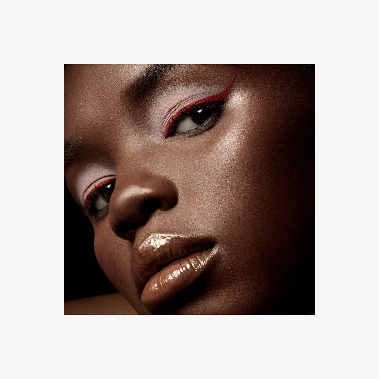 Tip profesional: Para un delineado cat eye diario, traza sobre tu Flyliner de Fenty Beauty y añade un toque inesperado de color.