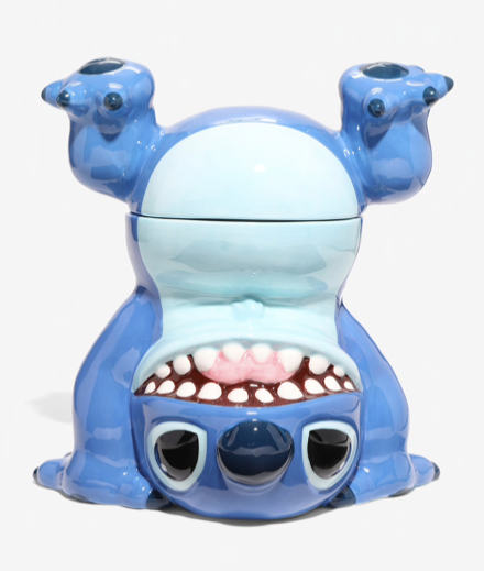 Definitivamente nos volveriamos de cabeza por unas galletas. ¡Solo pregúntale a Stitch! Este tarro de galletas de cerámica presenta el Experimento 626 al revés y es el lugar de almacenamiento perfecto para sus golosinas favoritas.