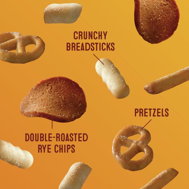 MEZCLA DE SNACK: Sabrosa mezcla de snack hecha con palitos de pan crujientes, pretzels y chips de centeno