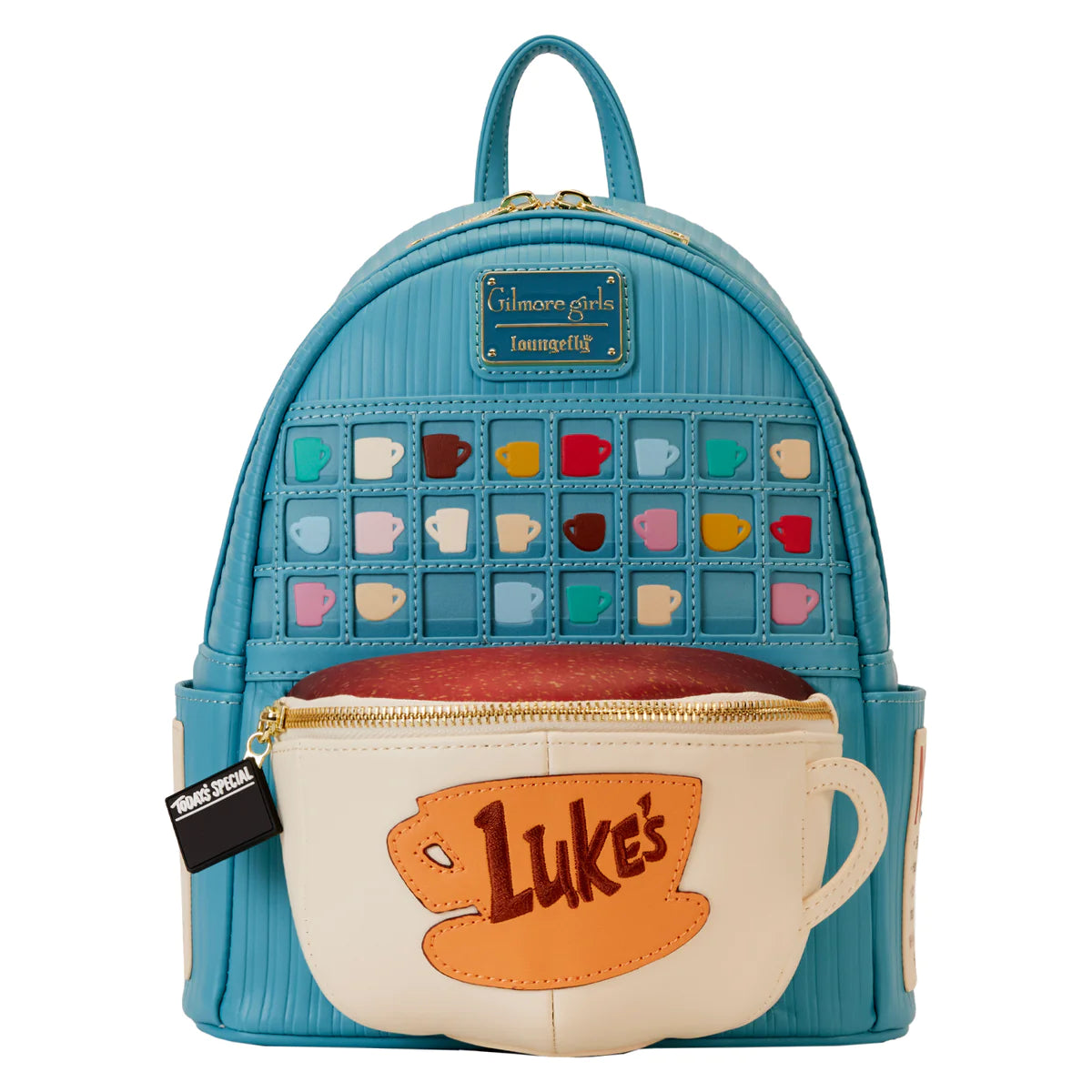 ¡Ven a ver lo que se está gestando en Luke's Diner! Nuestra mini mochila Loungefly Gilmore Girls Luke's Diner Domed Coffee Cup ofrece estilo con todo tipo de detalles únicos. Tome una silla en el mostrador y guarde su teléfono celular dentro del bolsillo delantero de esta mochila, que es un aplique figurado en forma de cúpula de la mitad de una taza de café, llena hasta el borde. Una parte superior de color café agrega detalles divertidos y realistas. En el centro, hay un aplique en forma de taza de café con la palabra "Luke" bordada en el medio. El amuleto de la cremallera es una pizarra con “Especial de hoy” escrito y, encima del bolsillo con forma de café, aparece un armario con tazas de café impresas en colores brillantes. Las tiras grabadas en azul crean un efecto de “paneles” que se extiende hasta la parte superior. Los paneles laterales de la mochila incluyen varias reglas que puedes encontrar en Luke's Diner, como "No teléfonos celulares" en un panel lateral y una lista adicional en el otro. En la parte posterior, la taza de café hace una aparición repetida como un contorno impreso en azul, con “Luke’s Gilmore Girls” impreso en el interior. Haz que cada día sea especial con esta encantadora mochila.