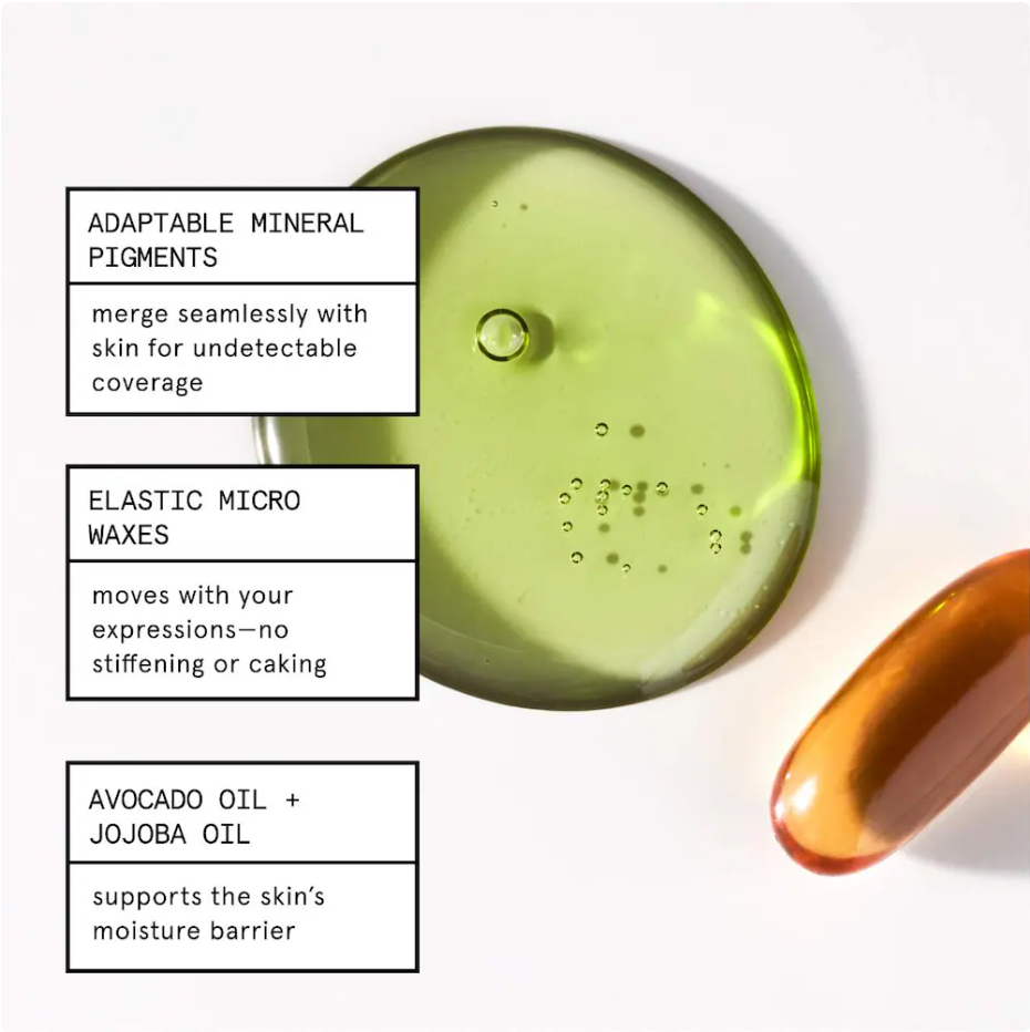 Lo que debes saber: Rica en emolientes que cuidan la piel, esta fórmula deja la piel hidratada y radiante. Sus pigmentos minerales adaptables ofrecen un efecto iluminador y cobertura natural que se funde con la piel, mientras que las ceras microelásticas se mueven con la piel sin apelmazar.